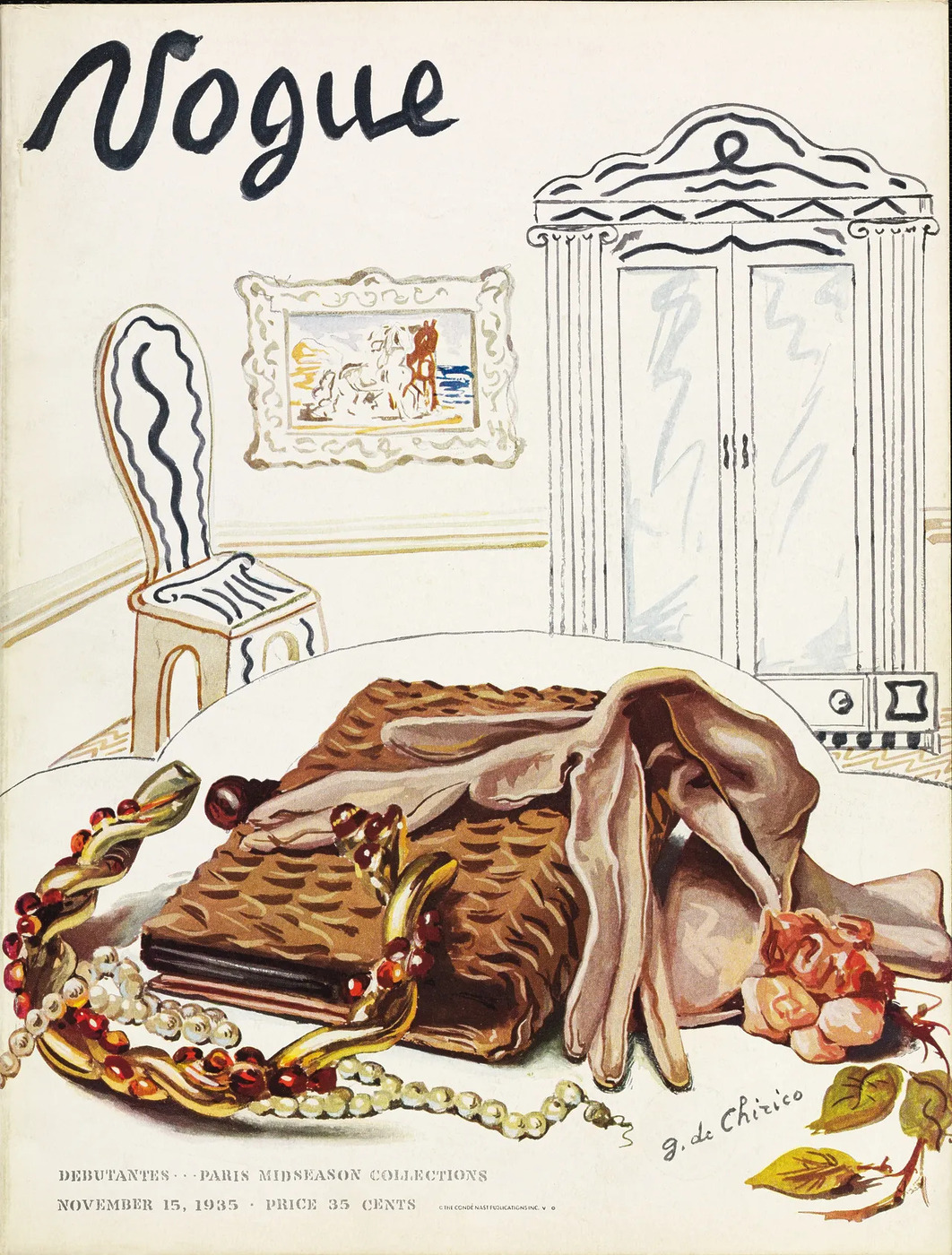 이 변화가 자리 잡도록 도운 것이 <보그>였습니다. 1909년 콘데 몽로즈 나스트(Condé Montrose Nast)가 <보그>를 인수한 이후, 잡지는 패션 정보를 전달하는 매체를 넘어 문화 플랫폼으로 확장됩니다. 1935년 <보그>는 초현실주의 화가 조르조 데 키리코(Giorgio de Chirico)에게 샤넬 16 버튼 장갑과 가방, 초커를 그리게 했습니다. 사진가 에드워드 스타이켄(Edward Steichen)은 “<보그>를 루브르로 만들어달라”고 청했고, 호스트 P. 호스트(Horst P. Horst)는 콘데 나스트의 후원이 패션 사진을 독립 장르로 성장시켰다고 회고했습니다. 단순히 옷을 소개한 것이 아니라, 옷을 둘러싼 다양한 시각적 시도를 한 셈이죠.