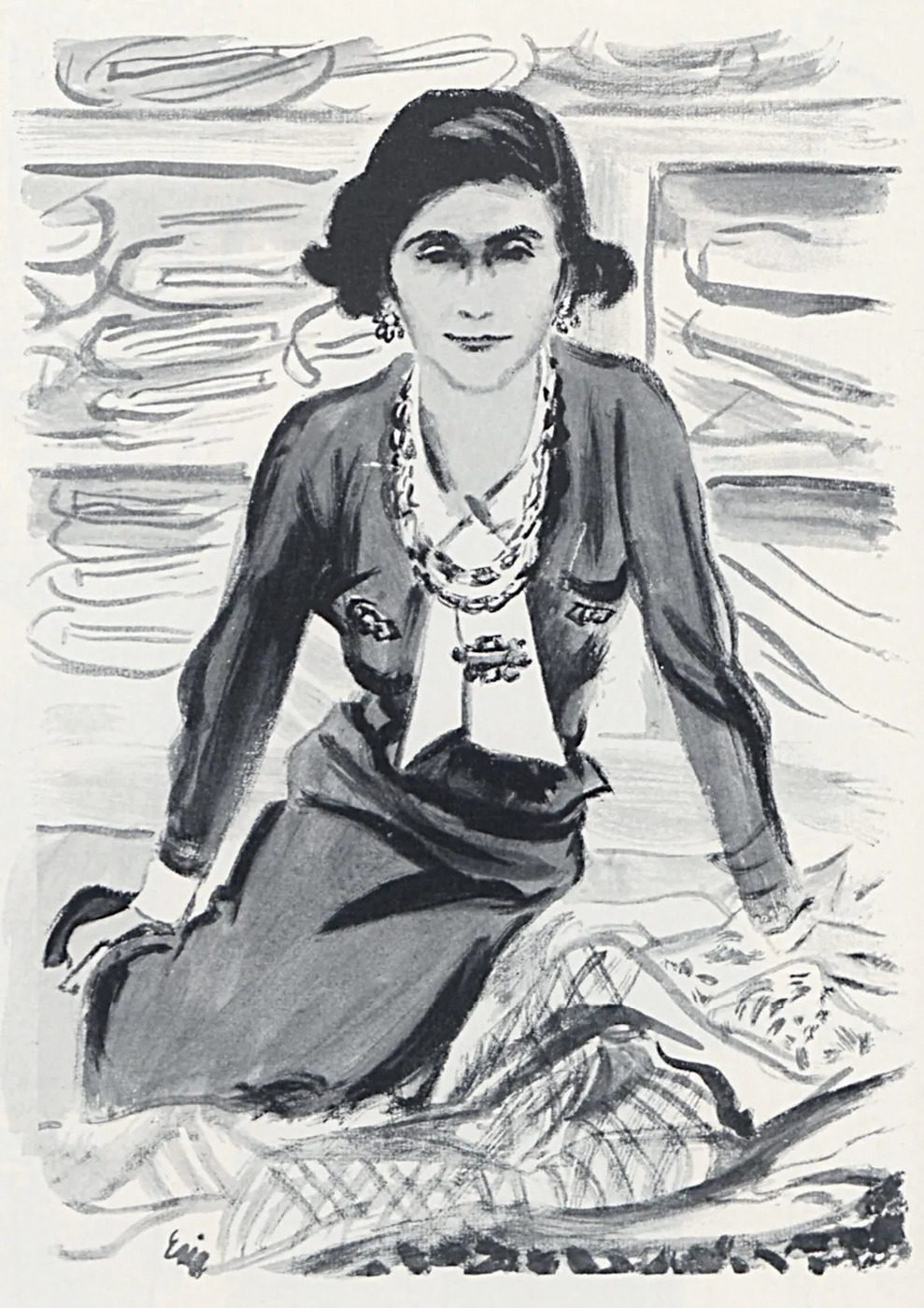샤넬이라는 이름이 <보그>에 처음 등장한 것은 1913년 1월 15일입니다. 무대 위 배우가 착용한 ‘검은 새틴 모자’ 일러스트레이션이 지면에 실렸죠. 샤넬은 모자 디자인으로 경력을 시작했고, 연극 ‘은둔한 악마(Le Diable Ermite)’ 무대에 오른 배우 가브리엘 도르지아(Gabrielle Dorziat)를 위해 모자를 디자인했습니다. 이는 장 콕토 ‘안티고네’ 의상 제작, 발레 뤼스 ‘르 트랭 블뢰(Le Train Bleu)’, 달리와의 협업까지 이어집니다.