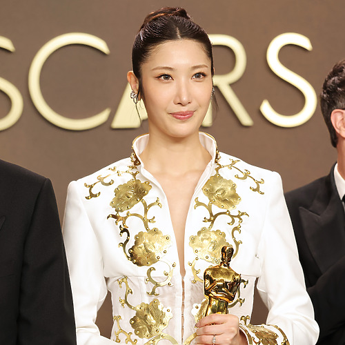 한국의 상징이 새겨진 이재의 오스카 드레스