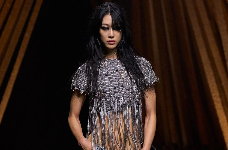 은근한 카키빛이 감도는 지수의 다크 애쉬 헤어. 말린 장밋빛 입술과 잘 어울린다.