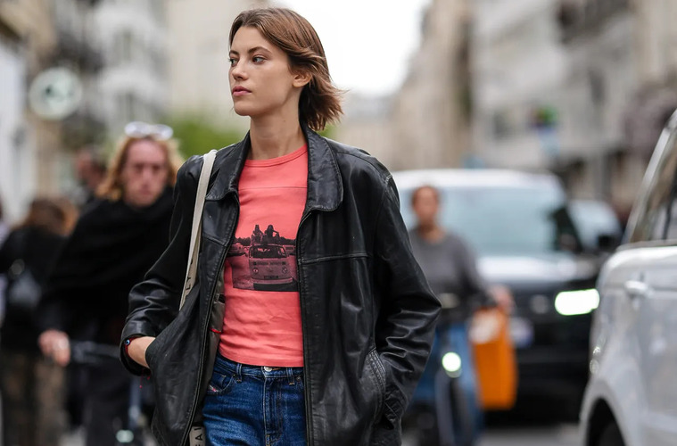 벨라 하디드는 빈티지 미니 백을 쿨한 바시티 재킷과 믹스했고