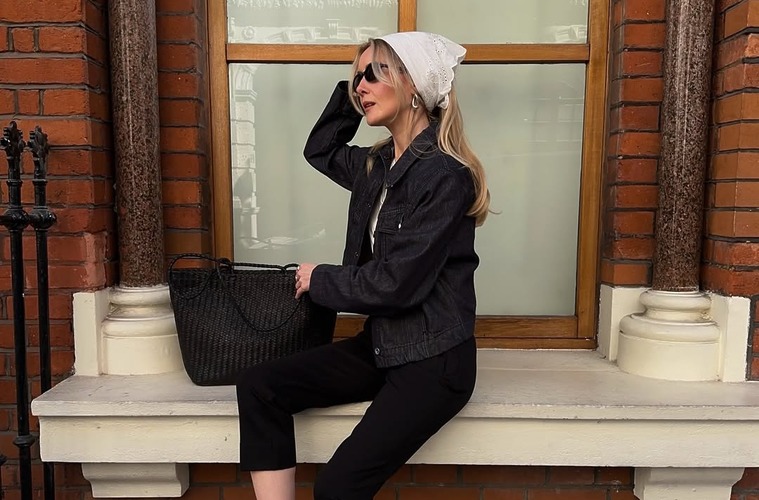 길고 가느다란 형태라 활용도가 높은 디올의 미차 스카프! 기은세는 레드 컬러 스카프를 선택해 데일리 룩을 완성했어요. 체크 패턴 카디건과 페일 블루 데님, 여기에 아일릿 디테일의 블라우스에 스카프를 포인트로 활용했습니다. 스카프 한쪽을 길게 빼서 블라우스 위에 늘어지도록 연출해 스카프의 존재감을 살린 센스도 눈여겨보세요!