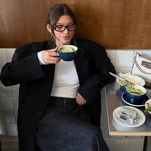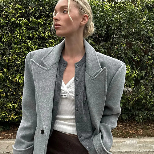 샤워 가운처럼 '폭닥한' 코트에 헐렁한 청바지 입은 제나 오르테가!