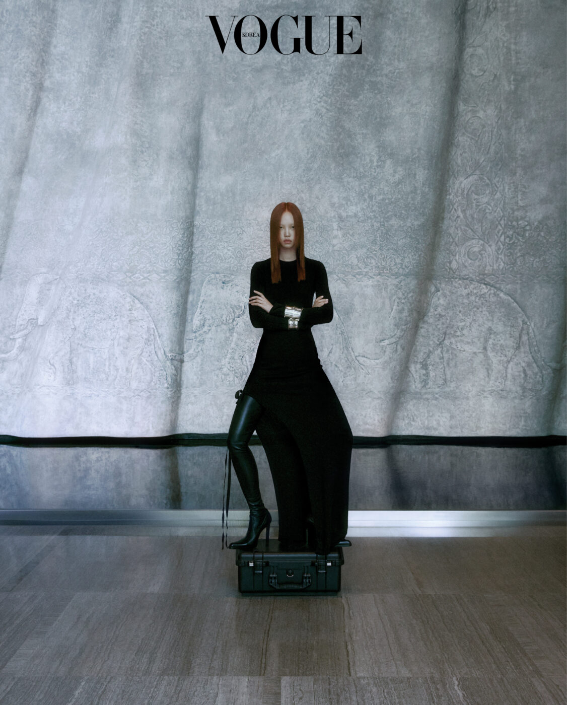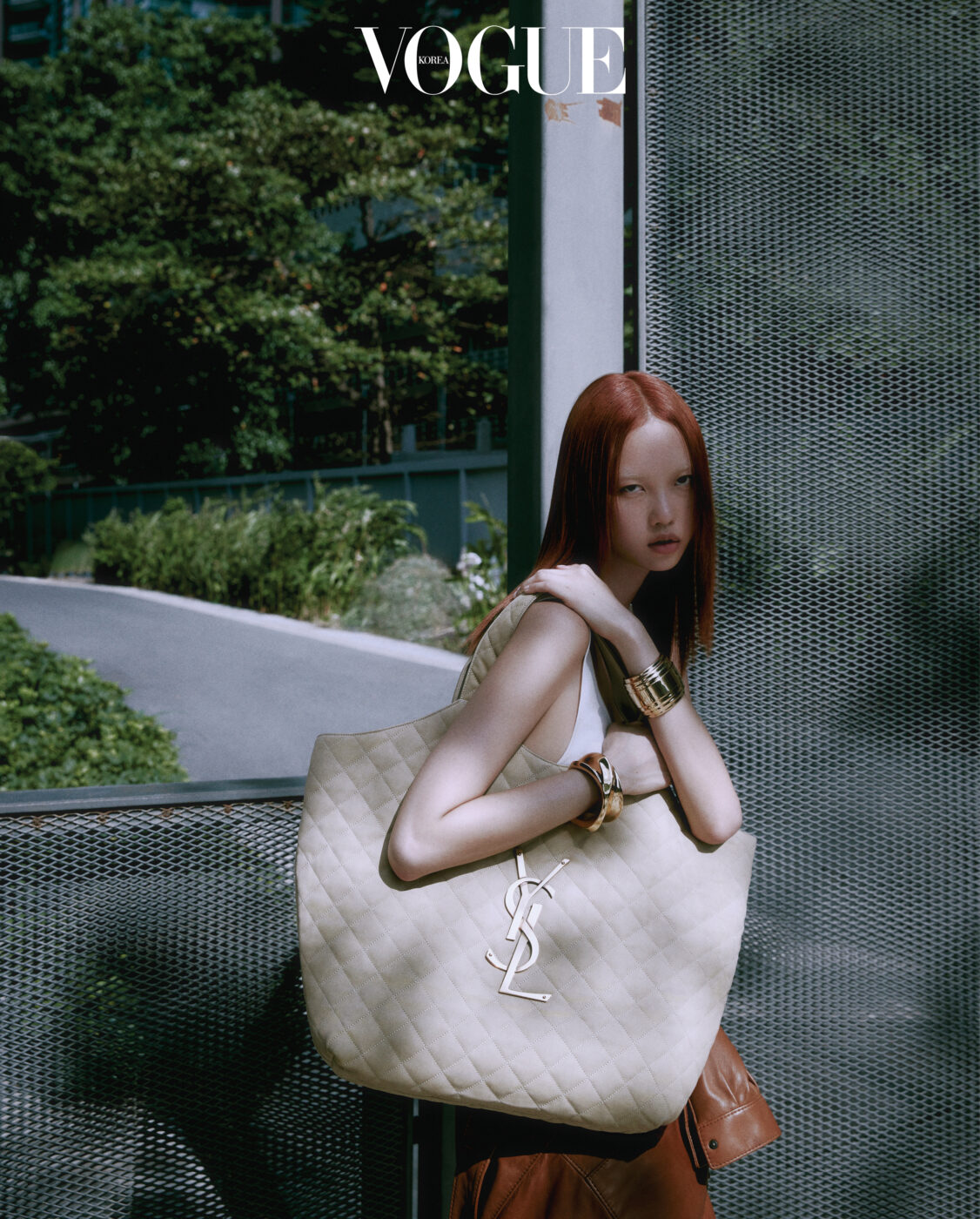 NEW START 로고 장식 ‘이카르’ 백을 든 잰. 다음 달엔 런던에서 뉴욕으로 떠나 새로운 도전을 시작한다. 의상과 액세서리는 생 로랑 바이 안토니 바카렐로(Saint Laurent by Anthony Vaccarello).