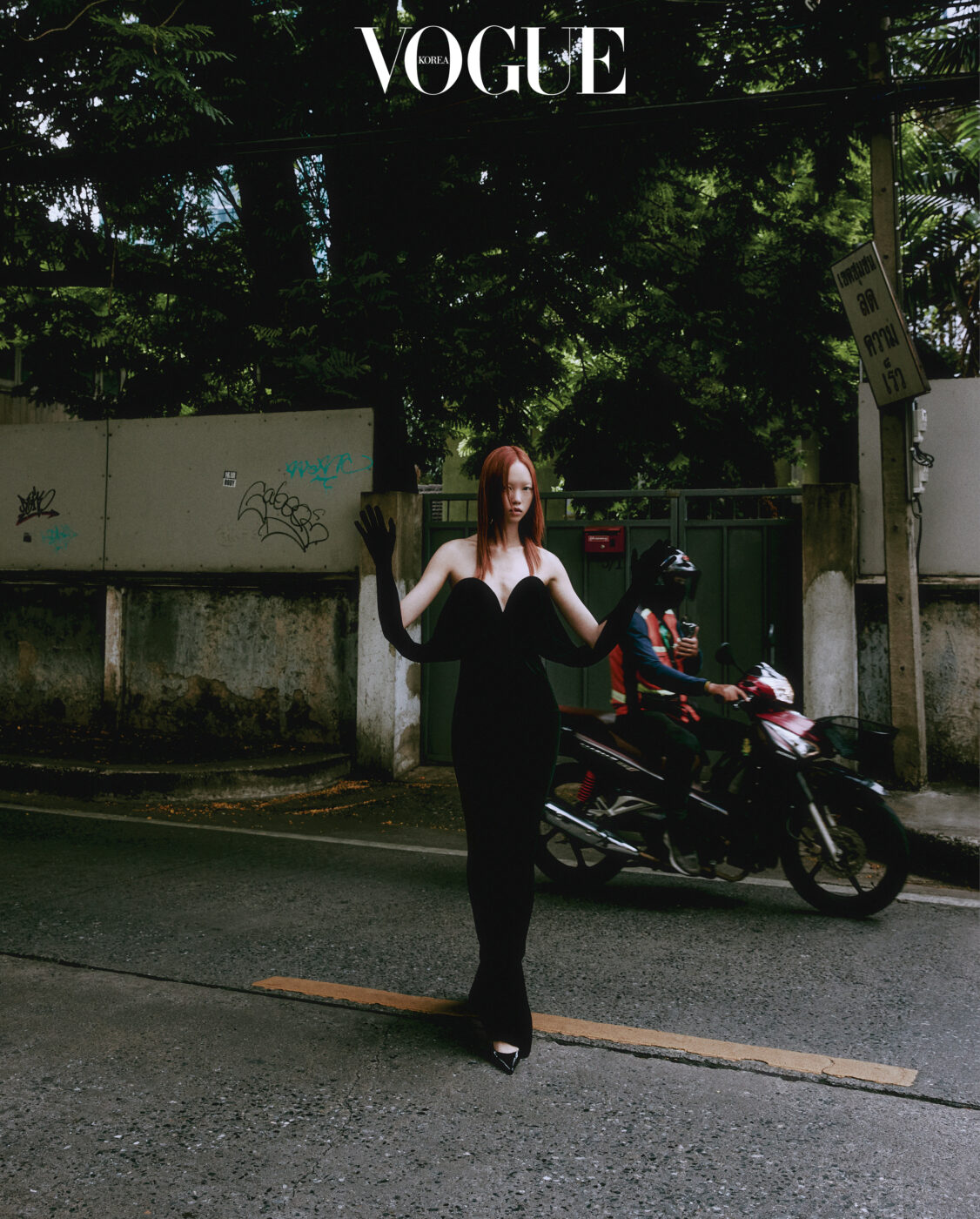 PURPLE PETAL 태국을 상징하는 보랏빛 난초와 함께한 모델 잰 바이분. 본명이 바이분 아룬쁘리차차이로, 태국을 대표하는 슈퍼모델로 꼽을 만하다. 11년 전 열여섯의 나이에 모델 일을 시작한 그녀는 곧 <보그 타일랜드> 화보에 등장했고, 거의 모든 패션쇼 무대에 올랐다. 2019년 버버리에서 독점으로 해외 활동을 시작한 그녀는 샤넬, 펜디, 보테가 베네타 등의 런웨이에 올랐다. 그녀가 <보그 코리아> 화보를 위해 오랜만에 방콕으로 돌아왔다. 생 로랑의 안토니 바카렐로가 디자인한 레드 벨벳 슬립 드레스와 태국 난초의 만남.