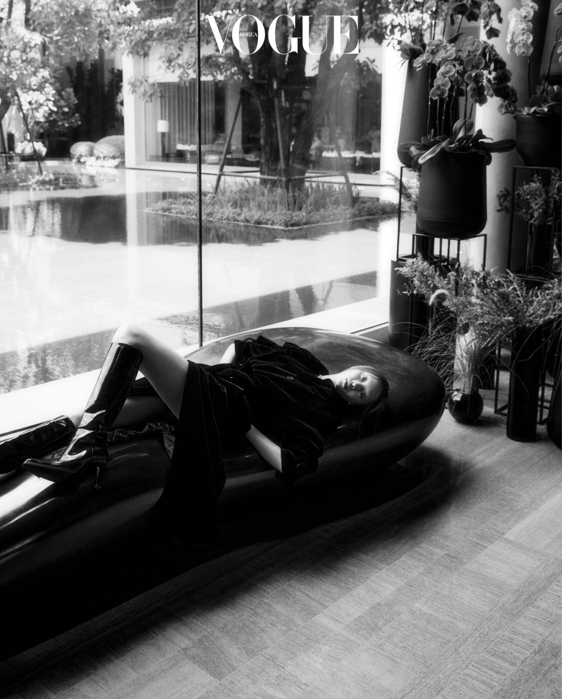 METAL WALL 레이스 톱, 벨벳 스커트에 시어링 재킷을 갖춰 입었다. 잰은 고향인 방콕에 돌아오자마자 가족과 함께 식사를 하고 고령의 할머니를 찾아갔다. “<보그> 덕분에 오랜만에 가족과 시간을 보냈어요. 고마워요.”