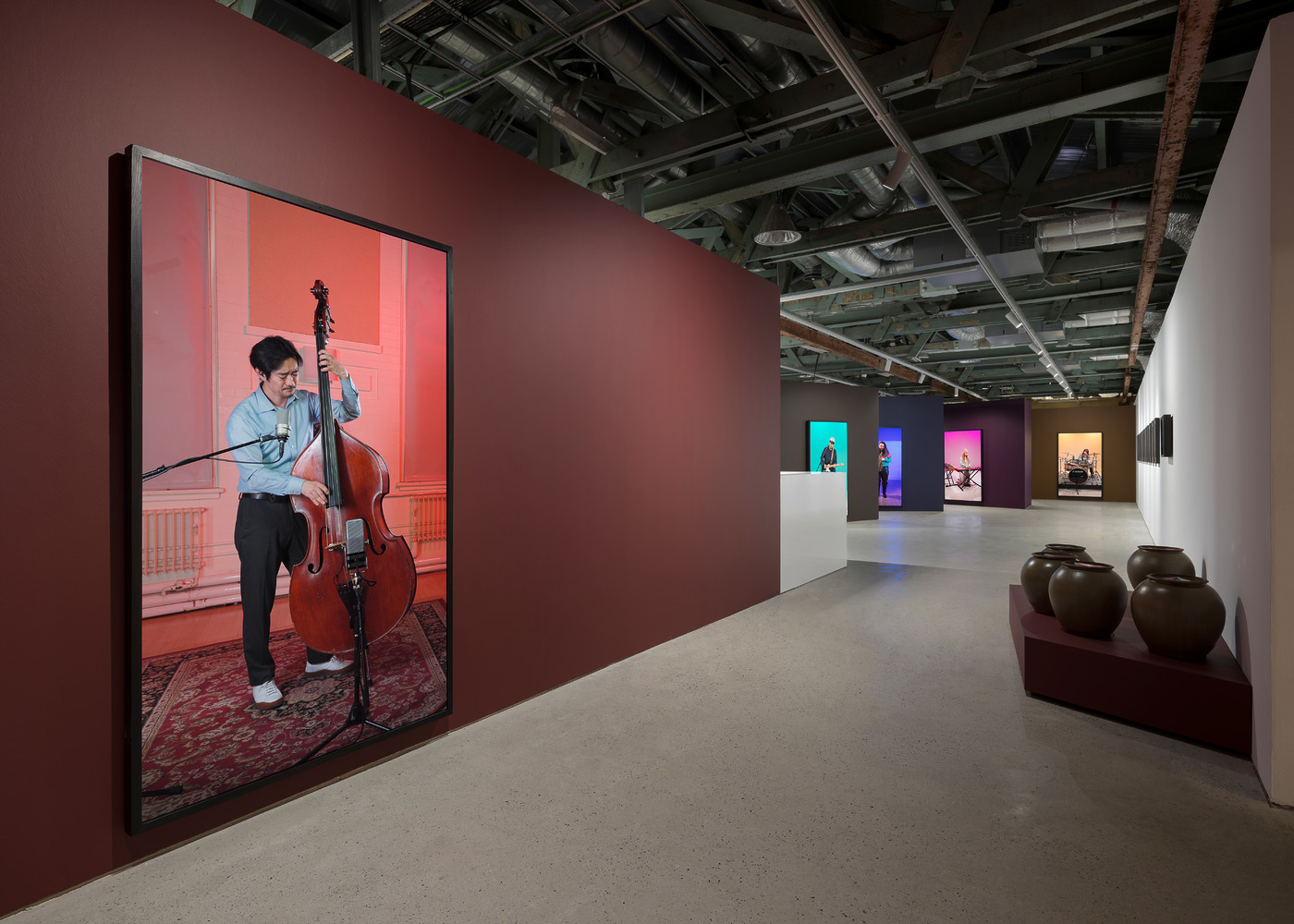 이번 전시에는 시적 면모와 음악적 시도, 그리고 연극의 언어가 두루 공존하고 있습니다. 정연두의 혼성적 작품을 하나하나 들여다보면서, 저는 ‘작가의 마음’을 헤아리는 기쁨을 만끽했습니다. 다양한 존재와 다층적 목소리, 그리고 삶을 대하는 태도와 염원의 순간이 시각적 이미지와 청각적 요소를 통해 현실화되었고, 이를 통해 작가만의 애정 어린 시선을 체감할 수 있습니다. 일례로 다섯 연주자의 영상과 연주 소리가 유난히 생동감 있게 느껴진 건 단순히 고성능 스피커 때문만은 아닐 겁니다. 영상이 아니라 가벽 안에 실제 사람이 들어가 있는 듯 입체적인 생생함은 그들과 우리가 함께한다는 걸 얘기하고 싶은 작가의 의도에서 비롯된 게 아닐까요. 여전히 이 복잡미묘한 전시를 한 문장으로 설명하긴 어렵지만, 명확히 알게 된 건 있습니다. 낯선 세계에 대한 인정과 소통의 가능성, 그리고 공감의 순간을 소망하는 작가의 마음이 섣부른 힐링보다 훨씬 강력하다는 사실입니다. 오랜만에 만난, 실로 다정한 현대미술입니다.