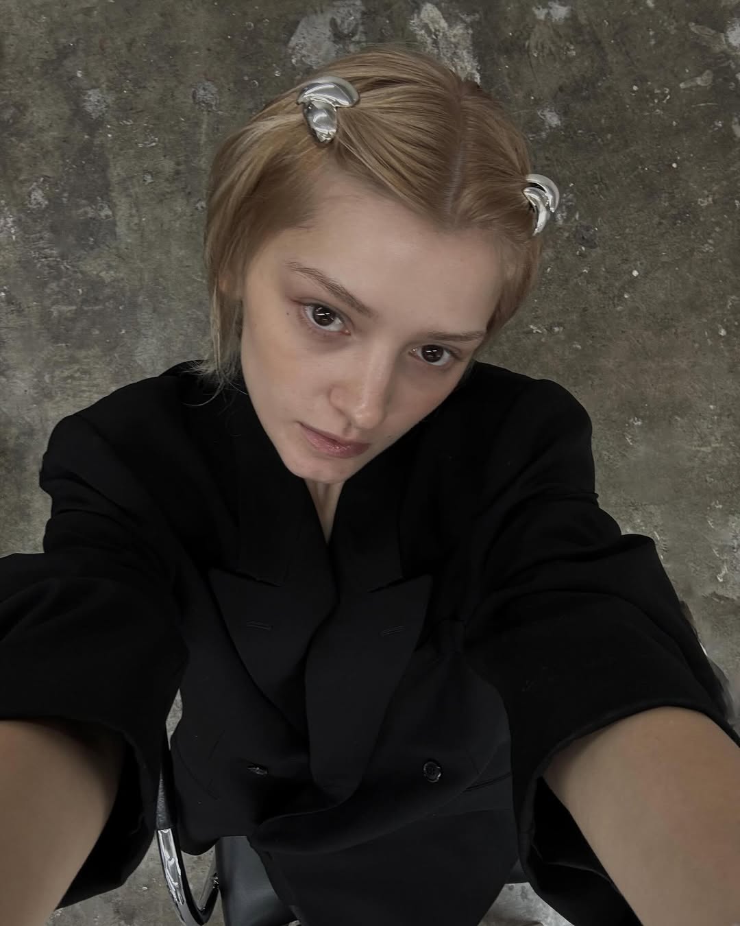 짧은 머리에 헤어 액세서리를 어떻게 해야 할지 모르겠다면 아이리스 로에게서 영감을 얻어보세요. 다양한 헤어 액세서리를 어쩜 그리 잘 매치하는지 매번 따라 하고 싶을 정도랍니다. 머리 길이보다 긴 헤어핀을 꽂아 오묘한 매력의 믹스 매치 룩을 완성하고요, 똑딱핀을 앞머리나 옆머리가 아니라 뒷머리에 꽂아 색다른 포인트를 주었죠.