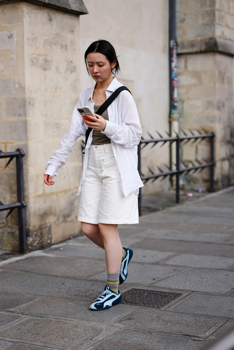 패션쇼에 참석하는 인물들은 어떻게 더위를 이겨내는지 궁금해졌습니다. 트렌드의 최전선에 있는 그들이라면, 멋과 실용성을 전부 챙길 수 있는 일종의 ‘절충안’을 찾아냈을 거라는 생각도 있었고요. 스트리트 포토를 살펴보니 정답이 보이더군요. 버뮤다 팬츠입니다. 파리 패션 위크 중 포착한 버뮤다 팬츠 스타일링법 여섯 가지를 소개합니다.