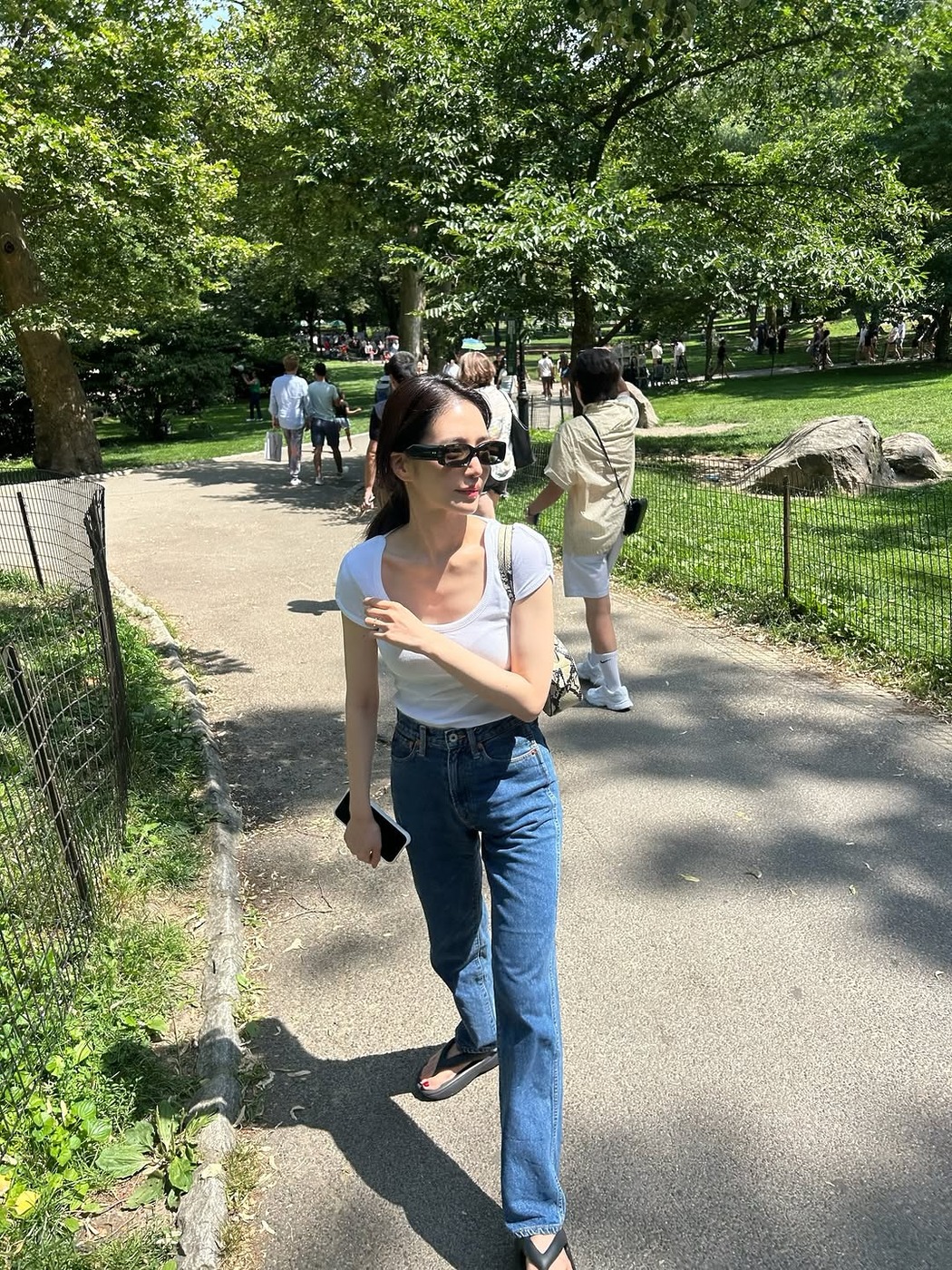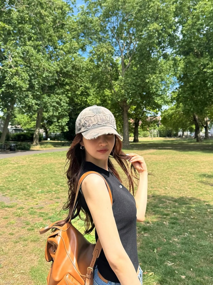 모자도 꼭 챙기세요. 룩에 포인트를 줄뿐더러 실용적이니까요. 지수처럼 볼캡을 푹 눌러쓰면 햇볕도 가리고, 무심한 듯 멋 낼 수 있습니다.