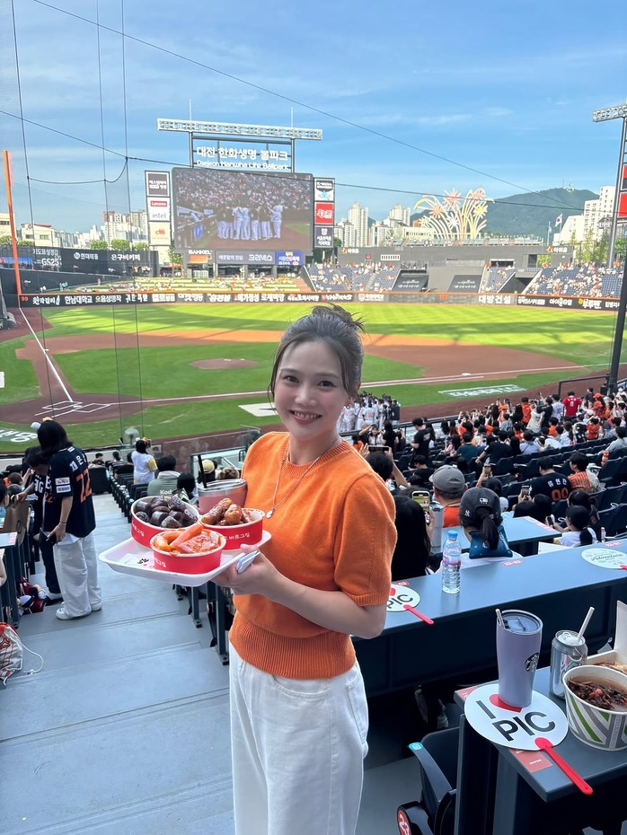 오마이걸 효정처럼 응원하는 스포츠 팀 컬러를 입어보는 것도 또 다른 재미고요!