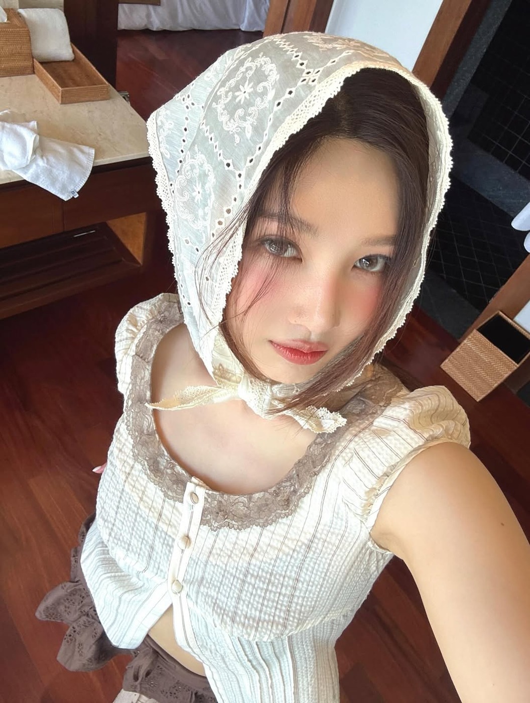 무엇보다 평소 출근길엔 꺼리는 디자인도 여행지에선 낯간지럽지 않습니다. 미연의 리본 장식이 달린 볼캡부터 조이의 Y2K 무드 볼캡까지! 기본 티셔츠 룩에 툭 올려주면 생기가 돌죠. 번외로 조이처럼 스카프를 둘러도 좋습니다.