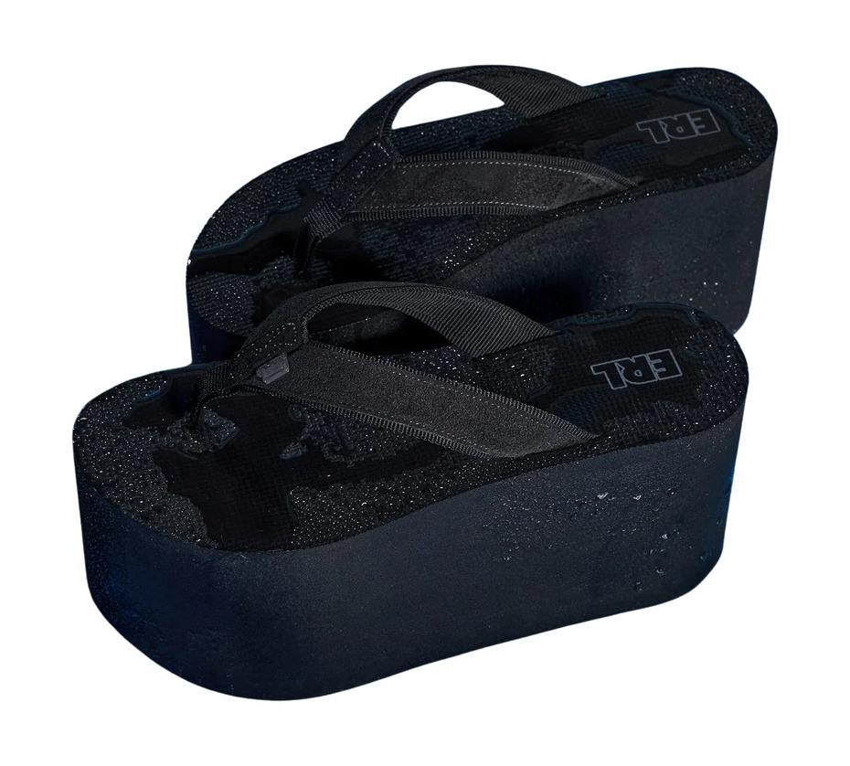 솔직히 이야기하자면, 특별할 것이 없는 디자인이었습니다. 끈 윗부분에 스웨이드를 더한 걸 제외하면, 하바이아나스처럼 흔히 볼 수 있는 플립플롭과 흡사했죠. 그럼에도 존재감이 부족하지는 않았습니다. 무려 8인치(20.32cm!)에 달하는 무시무시한 높이 덕분이었죠. ERL의 캠페인 사진을 보자마자 ‘이거다’ 싶었습니다.