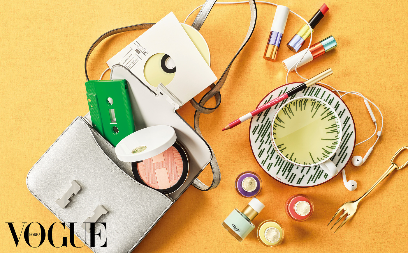 향긋한 차향이 머무는 가방 속에서 펼쳐지는 세레나데. 에르메스 뷰티의 감각적이고 여유로운 리듬이 취향의 선율과 어우러진다.