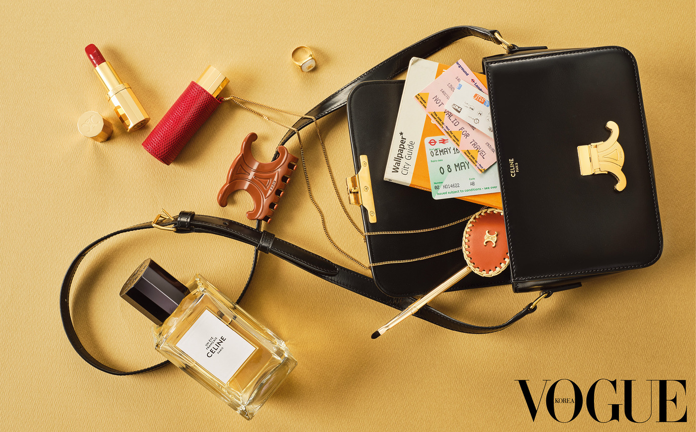 파리지엔의 자유분방함을 투영하는 셀린느 보떼의 레드 립과 향수. 어디든 훌쩍 떠날 준비가 된 여행자의 우아한 동반자다.