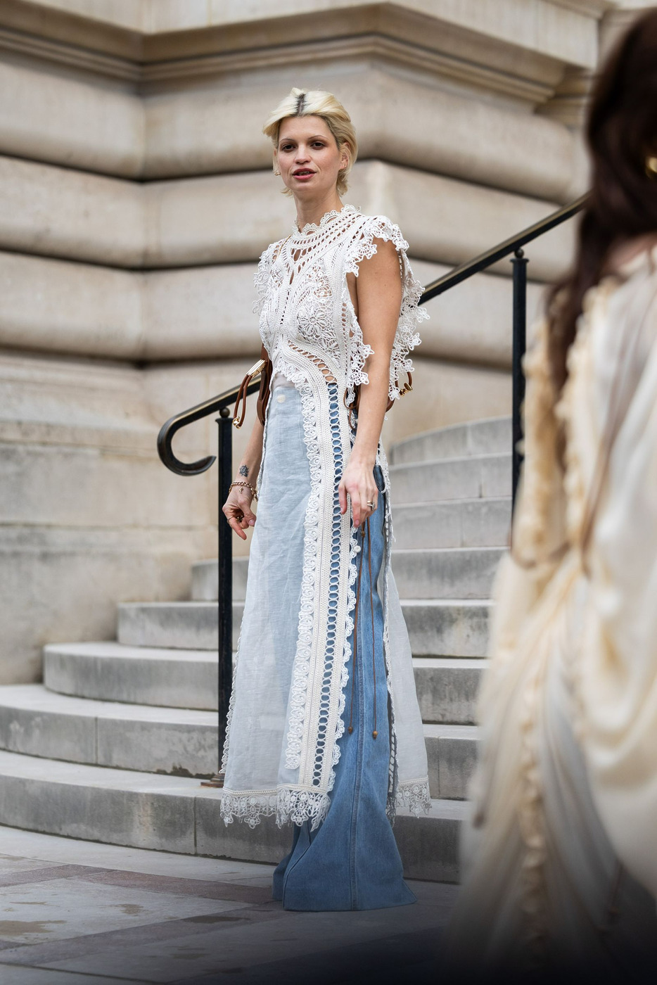 2000년대 초반에 대한 향수는 로우 라이즈 진에서 끝나지 않습니다. 레이스 자수, 스웨이드 호보 백, 그리고 올슨 자매를 중심으로 유행하던 보헤미안 시크도 빼놓을 수 없죠. 불규칙적인 레이어와 대조적인 질감으로 구성된 미학을 추구했고요. 오늘날에도 이 스타일은 자수가 들어간 보헤미안 스타일의 롱 블라우스에 플레어 진을 매치하는 방식으로 살아 있습니다. 자유로움과 여성스러움이 동시에 풍기는 스타일로요.