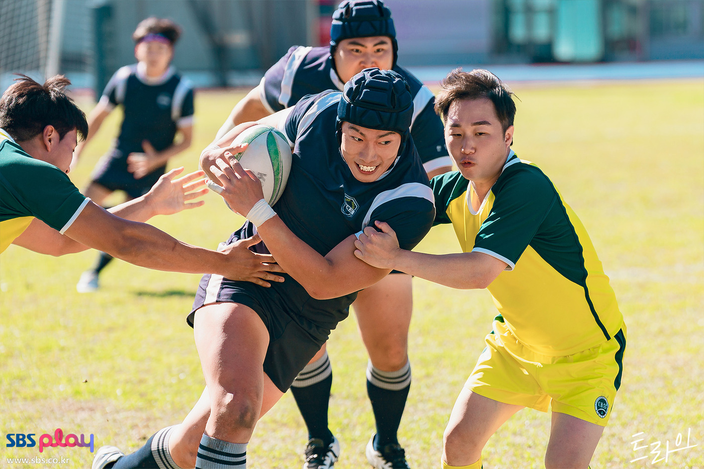 <트라이> 2화, 만년 꼴찌에다 최근 팀 내 불화를 겪은 한양체고는 이웃 학교와 연습 경기에 나선다. 전반 내내 팀이 크게 밀리지만 주가람은 별 작전을 내놓지 않는다. 선수들이 “후반전을 이길 수는 없는 겁니까”라고 스스로 투지를 드러내자 그제야 감독이 득점 전략을 내놓는다. 경기가 속개되면 주가람의 내레이션이 오버랩된다. “날아오는 럭비공을 한 번이라도 받아본 사람은 안다. 럭비공이 얼마나 예측할 수 없는 궤적을 가졌는지. 그래서 럭비의 득점은 ‘골’이 아니라 ‘트라이’다. 어디로 튈지 예상할 수 없는 공을 붙잡기 위한 수많은 시도와 도전에 대한 찬사를 담아. 그러니까 럭비는 ‘결과’가 아니라 시도와 도전의 ‘과정’이다. 매 순간 앞을 가로막는 장애물과 덮쳐오는 태클에 굴복하지 않는 과정. 그래서 우리는 럭비를 한다.” 이건 곧 ‘그래서 우리는 럭비 드라마를 찍었다’는 제작진의 변이고, 제목에 대한 해설이다.