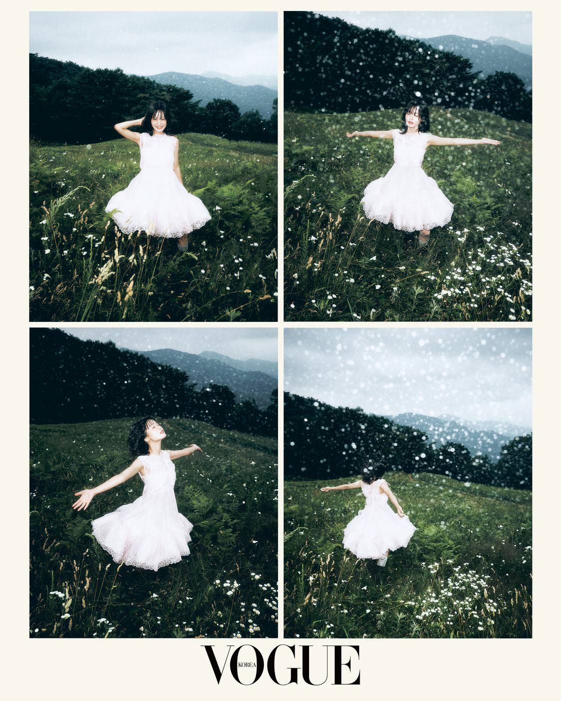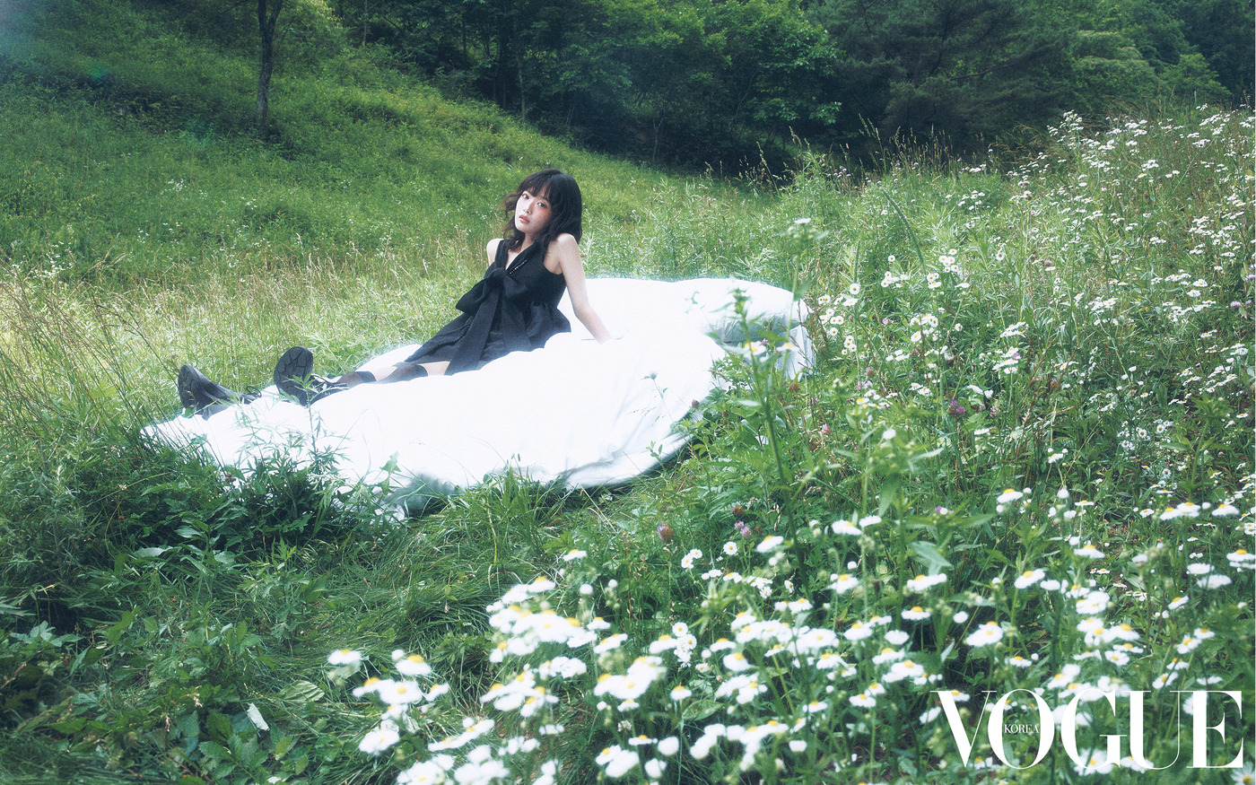 촬영 전부터 기대가 컸습니다. 촉촉한 날씨가 무엇보다 제 마음에 꼭 들었어요. 특히 초록빛 풀밭 위에 침대를 마련해주셨는데, 그 위에서 촬영한 결과물이 어떻게 나왔을지 무척 궁금해요.