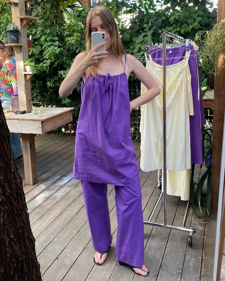퍼플 컬러에 호기심이 생겼다면 LA의 인디 브랜드 브룩 칼라한(Brooke Callahan)의 아이템을 눈여겨봐도 좋겠습니다. 포플린 원피스, 코튼 백, 그리고 ‘잇걸’ 사이에서 입소문 난 팬츠까지, 일상에서 활용할 캐주얼 아이템이 가득합니다.