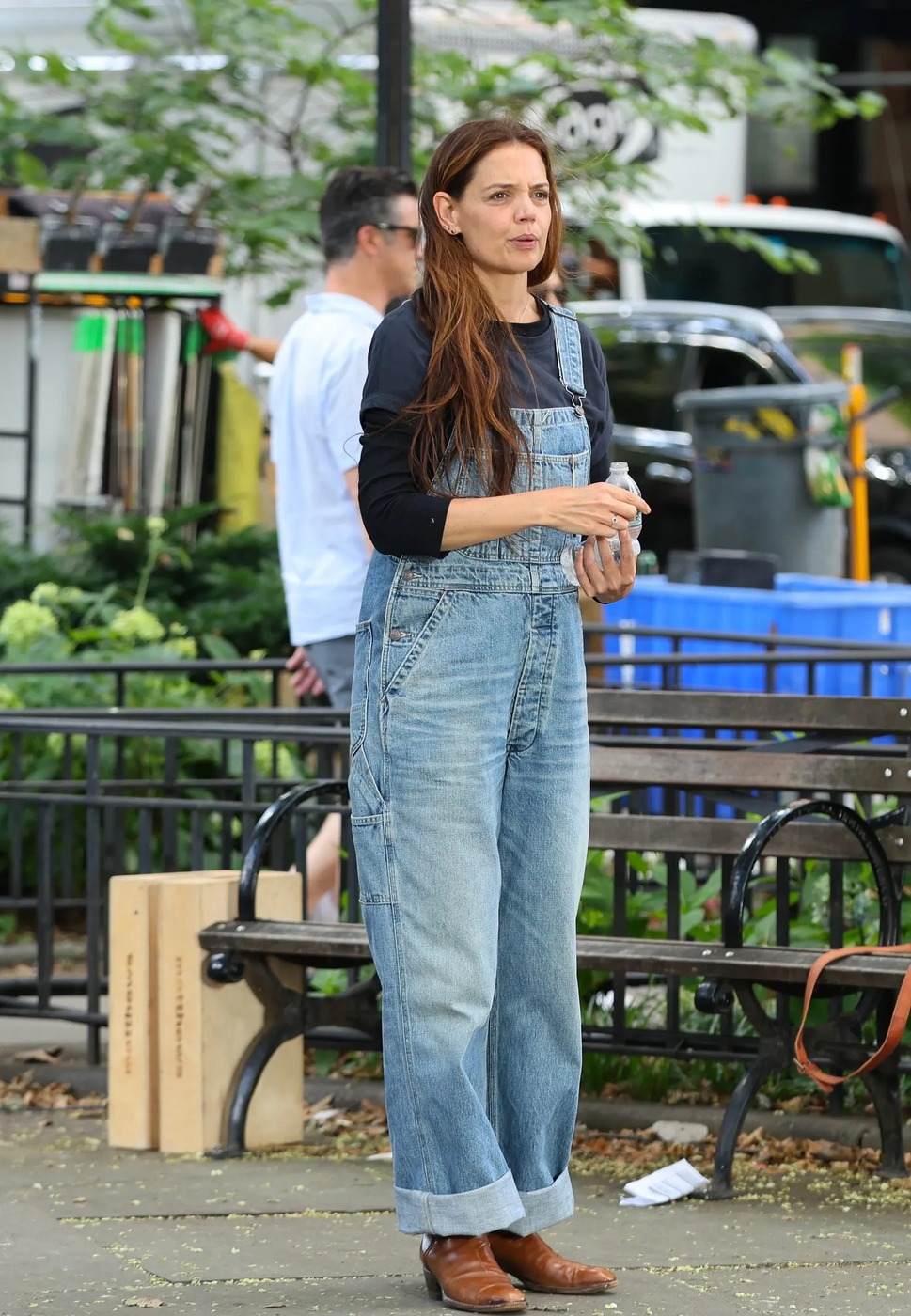 촬영 현장에서 포착된 사진을 보면, 극 중 의상은 물론 감독으로서 홈즈의 스타일 역시 인상적입니다. 특히 청색 데님 멜빵 바지에 갈색 부츠를 매치한 모습은 <도슨의 청춘일기> 속 홈즈가 맡았던 캐릭터인 조이를 떠올리게 합니다. 또 다른 룩은 여유로운 핏의 핑크 블레이저에 와이드 데님 팬츠를 입어 홈즈의 원래 스타일에 가까운 모습이죠.