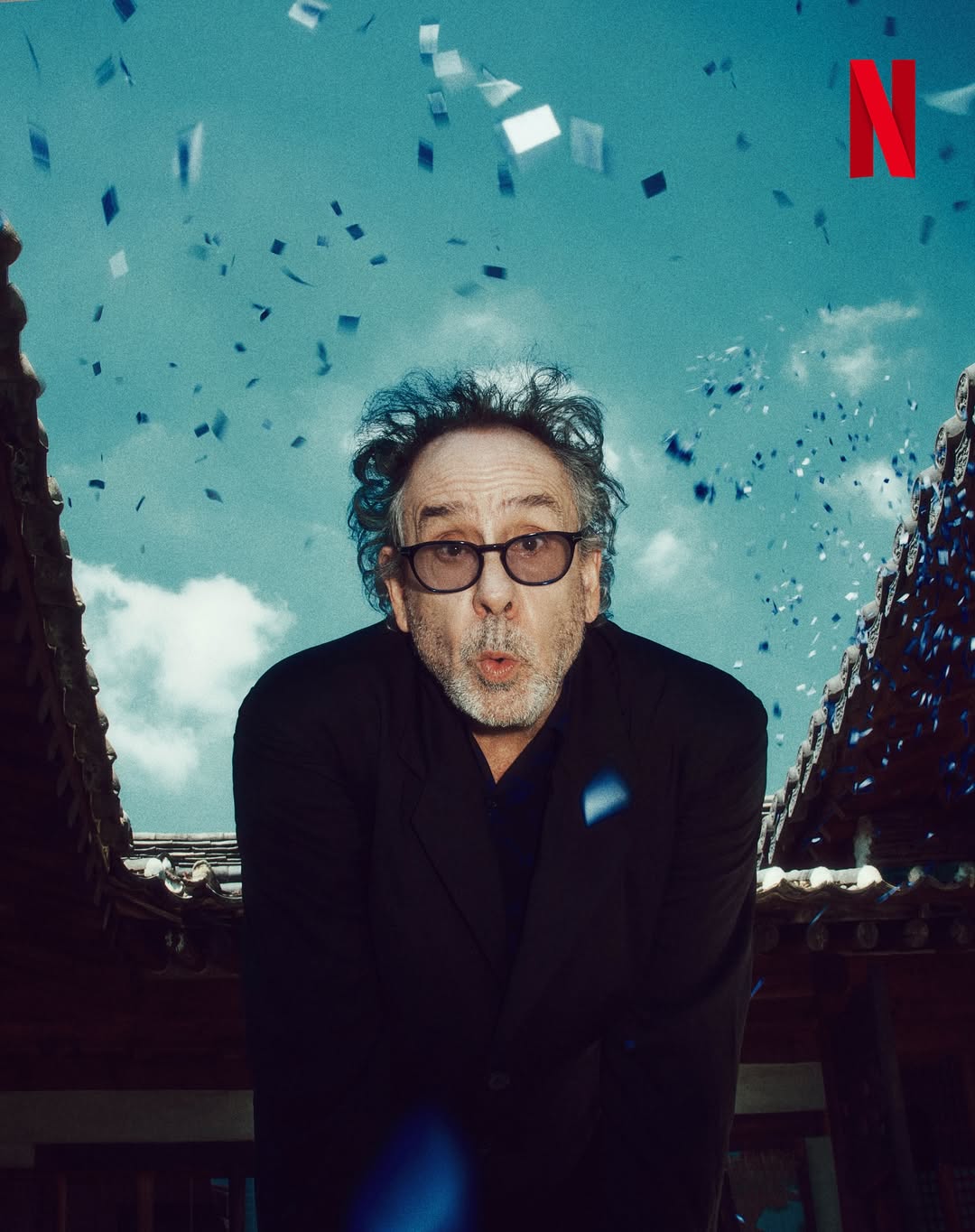전통 기와지붕을 배경으로 선 팀 버튼 감독! 그가 서 있으니 금방이라도 어떤 사건이 펼쳐질 것만 같네요!