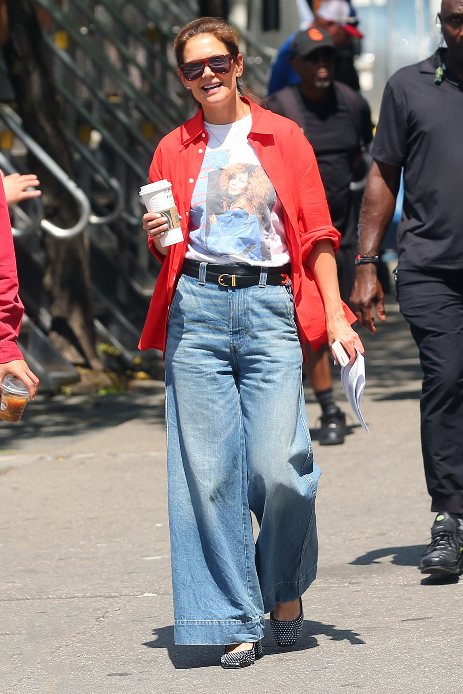 요즘 케이티 홈즈는 영화 <해피 아워스(Happy Hours)> 촬영으로 여념이 없습니다. 휴식 시간에도 대본을 들고 거리를 걷고 있었죠. 눈에 띈 건 그녀의 사복 스타일이었지만요. 바로 이틀 전 그녀가 선보인 룩을 한번 살펴볼까요? 가장 먼저 눈에 들어온 것은 물이 잔뜩 빠진 와이드 데님이었습니다. 그녀의 종아리가 3개는 족히 들어갈 것만 같은, 캐주얼한 분위기의 청바지였죠.