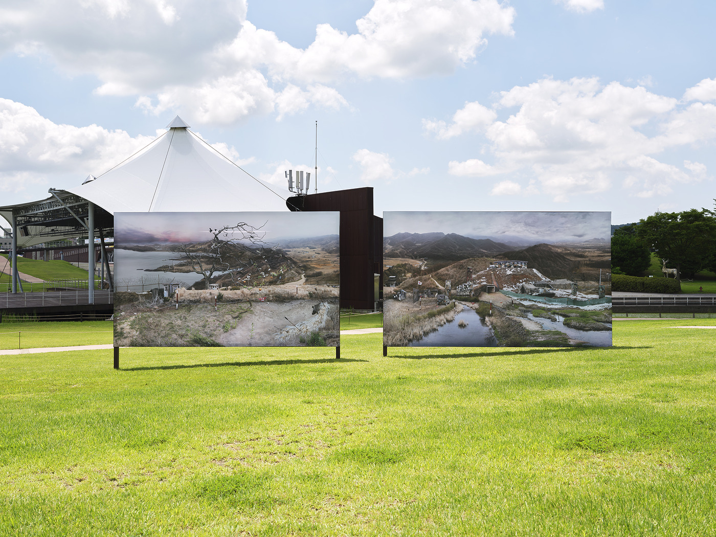 전시장은 파주 임진각 평화누리에서 곤돌라에 탑승해 갤러리 그리브스, 통일촌 마을 등으로 진입할 수 있다. 임진각 평화누리의 푸른 잔디에는 압도적인 대형 설치 작품이 들어섰다. 원성원의 ‘황금털을 가진 멧돼지’는 설화를 통해 남북의 화해와 치유를 말한다. 신라 시대 철원 보개산 기슭의 돌배나무에 앉은 까마귀가 날아오를 때 우연히 떨어진 배에 독사가 맞았다. 독사와 까마귀는 서로 공격하다 죽었고 원한이 윤회를 거듭해 이어졌다. 지장보살이 황금털을 가진 멧돼지로 환생한 후 사냥꾼의 화살을 맞음으로써 원한의 고리를 끊어냈다. 작가는 황금털 멧돼지가 그랬듯이 오래 반복된 상처와 원한이 끊어지길 소망한다.