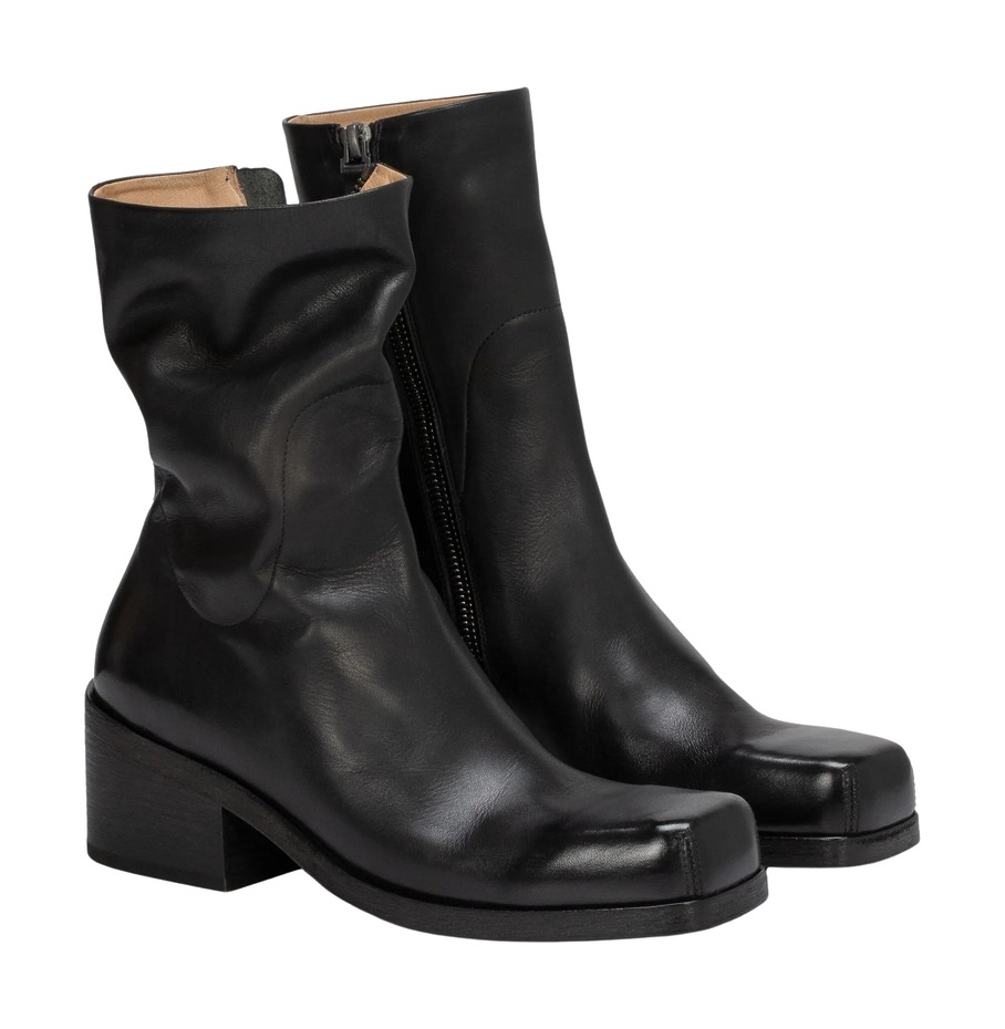 사실 ‘칼발’이 아닌 분들은 스퀘어 토나 트라이앵글 토를 오래 신기 어렵습니다. 그렇게 각 잡힌 부츠에 지쳤을 때 라운드 토를 꺼내보세요. 발끝이 둥글게 떨어지는 디자인은 편안함과 사랑스러움을 동시에 부여합니다. 리즈 위더스푼의 미소처럼요! 레드 레더 재킷 같은 강렬한 아이템에 매치했을 때도 과함을 누그러뜨리며 부드럽게 마무리되고요.