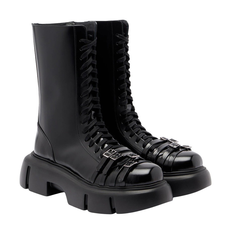 최근 블랙핑크의 뮤직비디오 ‘뛰어(JUMP)’에서도 컴뱃 부츠가 등장했습니다. 멤버들처럼 무릎까지 오는 롱부츠를 신기는 부담스러워도 앵클 길이는 제법 현실적이죠. 사라 제시카 파커는 미니멀한 룩에 포인트로 더했고, 나오미 캠벨은 다리가 훤히 보이는 슬릿 스커트에 믹스 매치했습니다. 투박한 솔과 레이스업 장식이 주는 강단 있는 인상을 백분 활용해보세요.