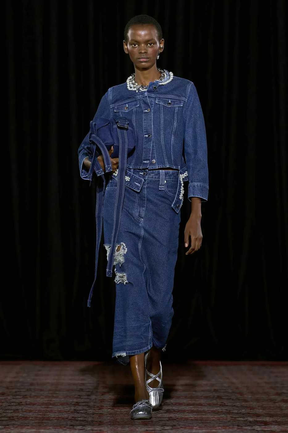 올가을엔 청바지에 데님 재킷을 걸쳐보세요. ‘청청’ 패션은 막상 시도하면 어렵지 않거든요. 데님 재킷과 바지 톤만 맞추면 안정감이 생기고, 다른 톤을 섞으면 경쾌해지죠. 시몬 로샤는 여기에 진주와 크리스털 장식을 얹어 아예 드레시한 아우터로 격을 높였습니다. 평범한 데님 재킷이 특별한 자리에도 손색없는 아이템으로 변모한 겁니다.