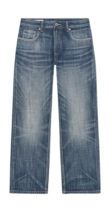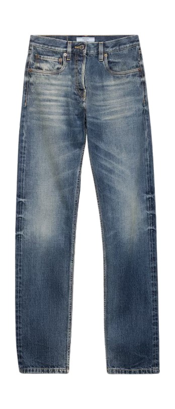 바지를 고를 때 가장 안전한 선택은 역시 스트레이트 핏이죠. 기본인 만큼 디테일이 중요합니다. 그저 그런 기본은 금세 지루해지기 쉬우니까요. 프라다는 스트레이트 데님에 빈티지 워싱과 은근한 대미지를 얹어 단정하면서도 느긋한 분위기를 만들었습니다.