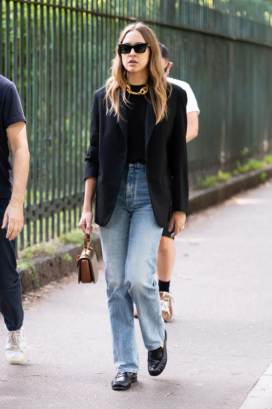 블레이저 + 스트레이트 데님 팬츠 + 로퍼