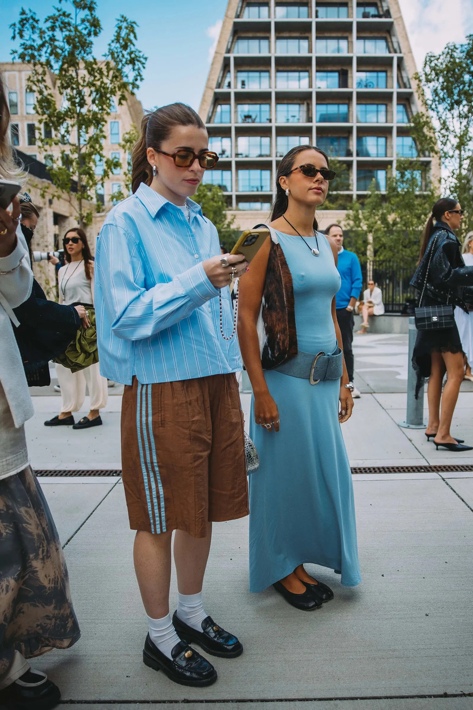 이번에는 반대로 극한의 믹스 매치를 살펴볼까요? 가장 먼저 집어 들 것은 해리 스타일스와 조 크라비츠 등 셀럽의 도움에 힘입어 트렌드 아이템 반열에 오른 트랙 쇼츠입니다. 상의로는 그와 반대 분위기를 머금은 셔츠가 좋겠군요. 이달 초 열린 코펜하겐 패션 위크 중 포착된 위 사진 속 게스트처럼, 스트라이프 패턴 셔츠를 활용해 드레시한 무드를 자아내는 것도 가능합니다.