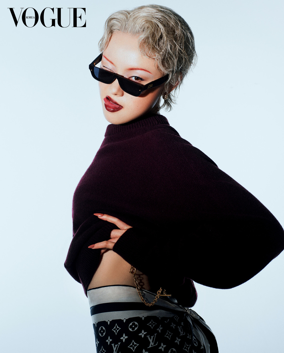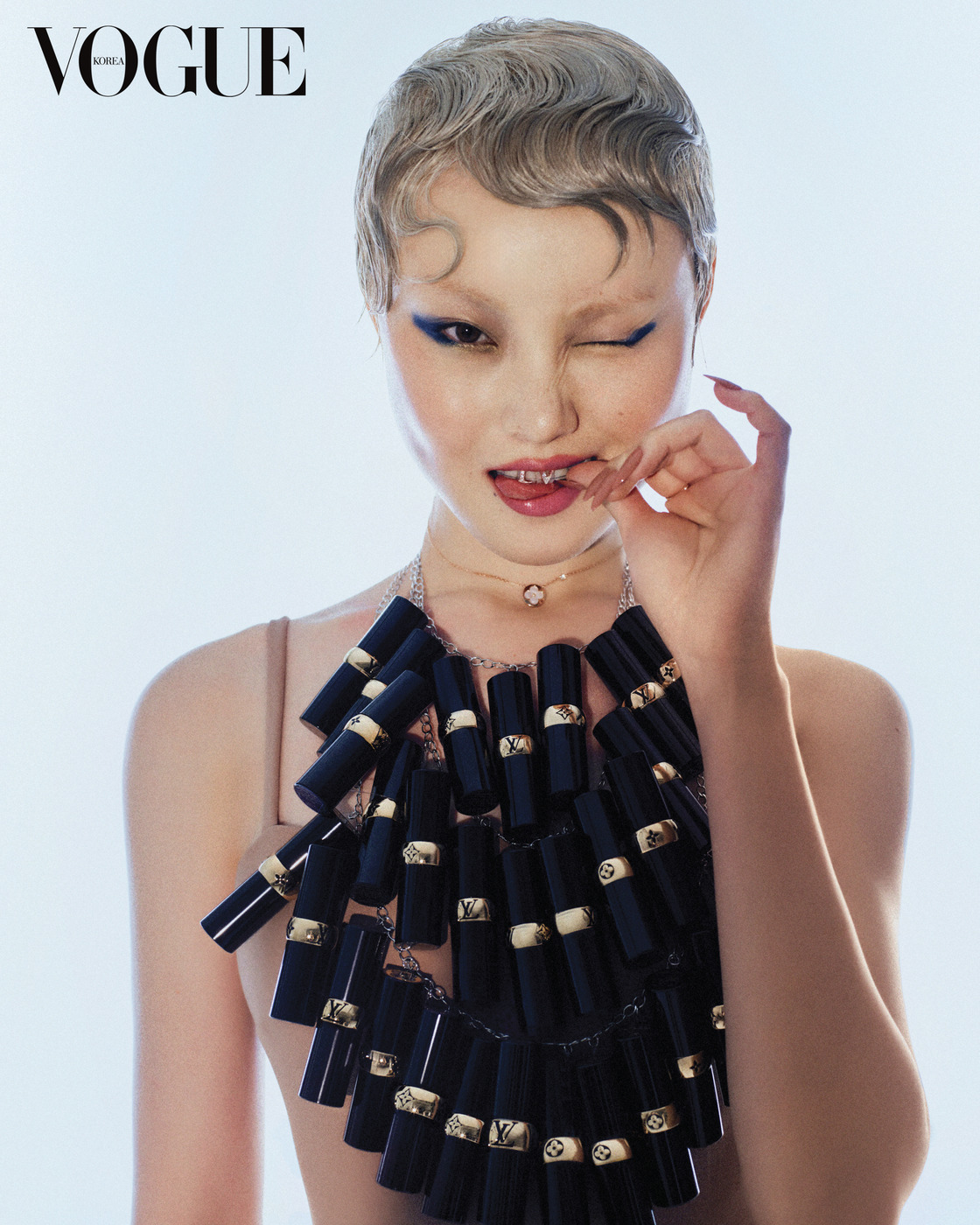 Redefine Luxury 럭셔리를 재정의하고 시대를 초월하는 아름답고 의미 있는 무언가를 만드는 건 이들의 사명이다. 아이와 블러셔는 ‘LV 옴브레 #650 웨이킹 던’. 입술은 ‘LV 루즈 새틴 #102 패스포트 투 파리’. 제품은 라 보떼 루이 비통. 카디건은 루이 비통(Louis Vuitton).