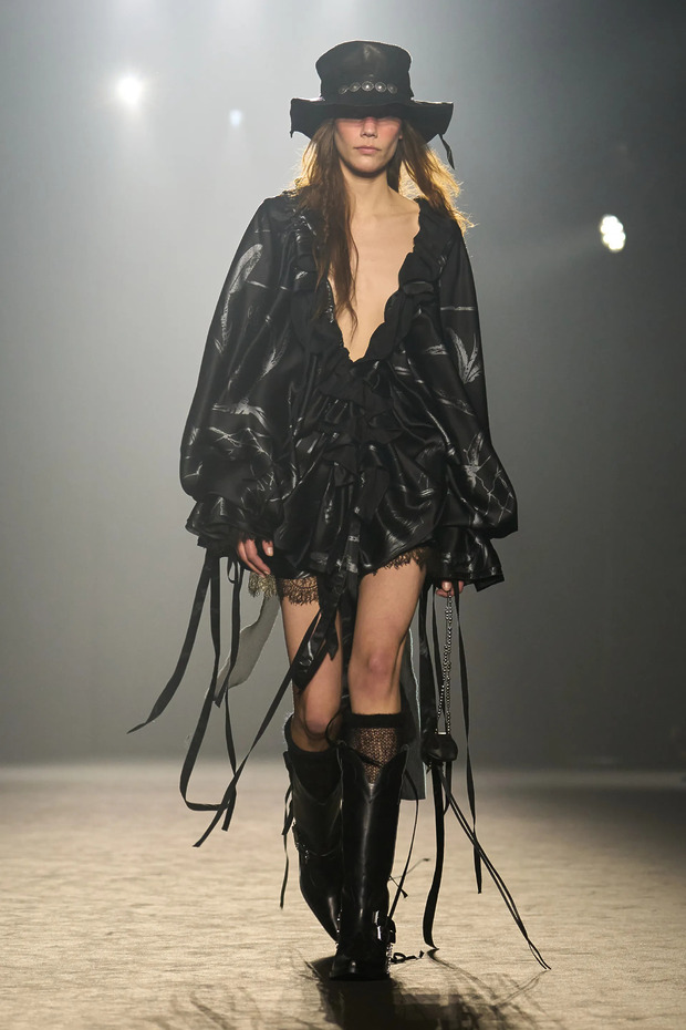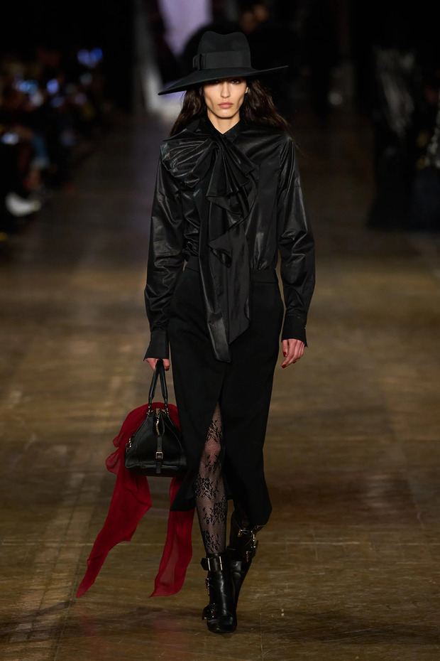 런웨이에서 힌트를 얻는 것도 가능합니다. 19세기 빅토리아 시대의 고딕 스타일에서 영감을 받아 완성된 맥퀸 2025 가을/겨울 컬렉션이 대표적인 예시죠. 한 가지 흥미로운 점은, 고스 스타일이 보헤미안 시크와 해적 코어와도 직접적으로 맞닿아 있다는 사실입니다. 러플, 레이스, 리넨 그리고 가죽 같은 소재 및 디테일을 핵심으로 삼는 세 스타일은 무척이나 닮아 있거든요!