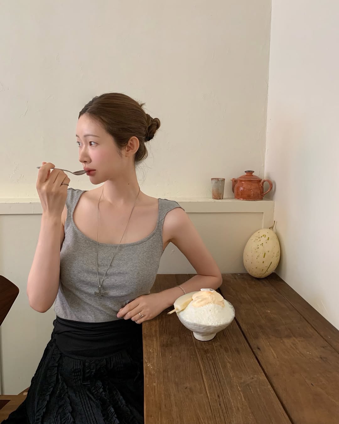 공개하는 데일리 룩마다 궁금증을 유발하는 사복 패션 천재 차정원. 그레이와 블랙을 활용한 세련되고 도회적인, 차정원의 모노톤 스타일링 키 아이템으로 활약한 티셔츠는 아뜰리에 에디션 제품입니다. 보디라인에 딱 맞는 슬림 실루엣, 스퀘어 네크라인이 특징인 티셔츠로, 암홀 라인이 깊어 탱크 톱을 입은 듯한 효과를 주죠. 6만1,000원의 가격으로 그레이를 포함해 블랙, 핑크, 화이트 총 4가지 컬러를 출시했어요.