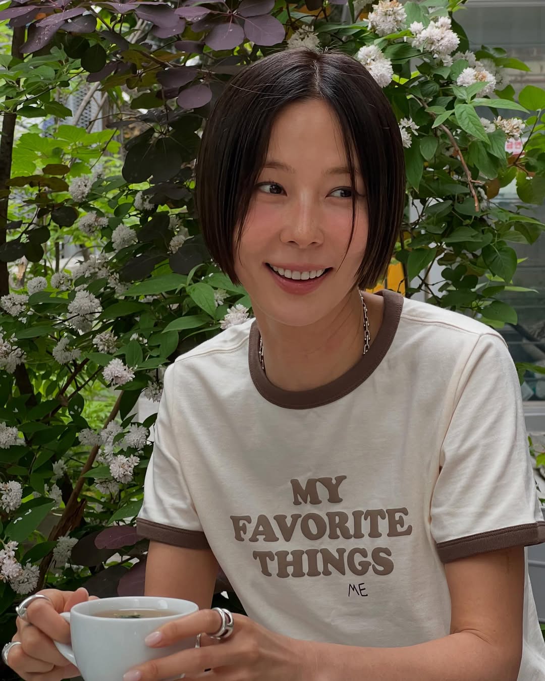 장희령은 티셔츠와 데님 쇼츠를 모두 화이트로 통일하고 셔츠와 잘 어울리는 르메르 베이지 컬러 크루아상 백과 컬러풀한 주얼리 네크리스로 포인트를 줬는데요. 산뜻하고 밝은 컬러, 하늘하늘한 소재와 대비를 이루는 닥터마틴의 ‘애니 스톤 하이 부츠’로 룩의 밸런스를 영민하게 조율했답니다. 샌들이나 스니커즈를 매치했을 때보다 더 뚜렷하고 묵직한 존재감이 느껴지죠?