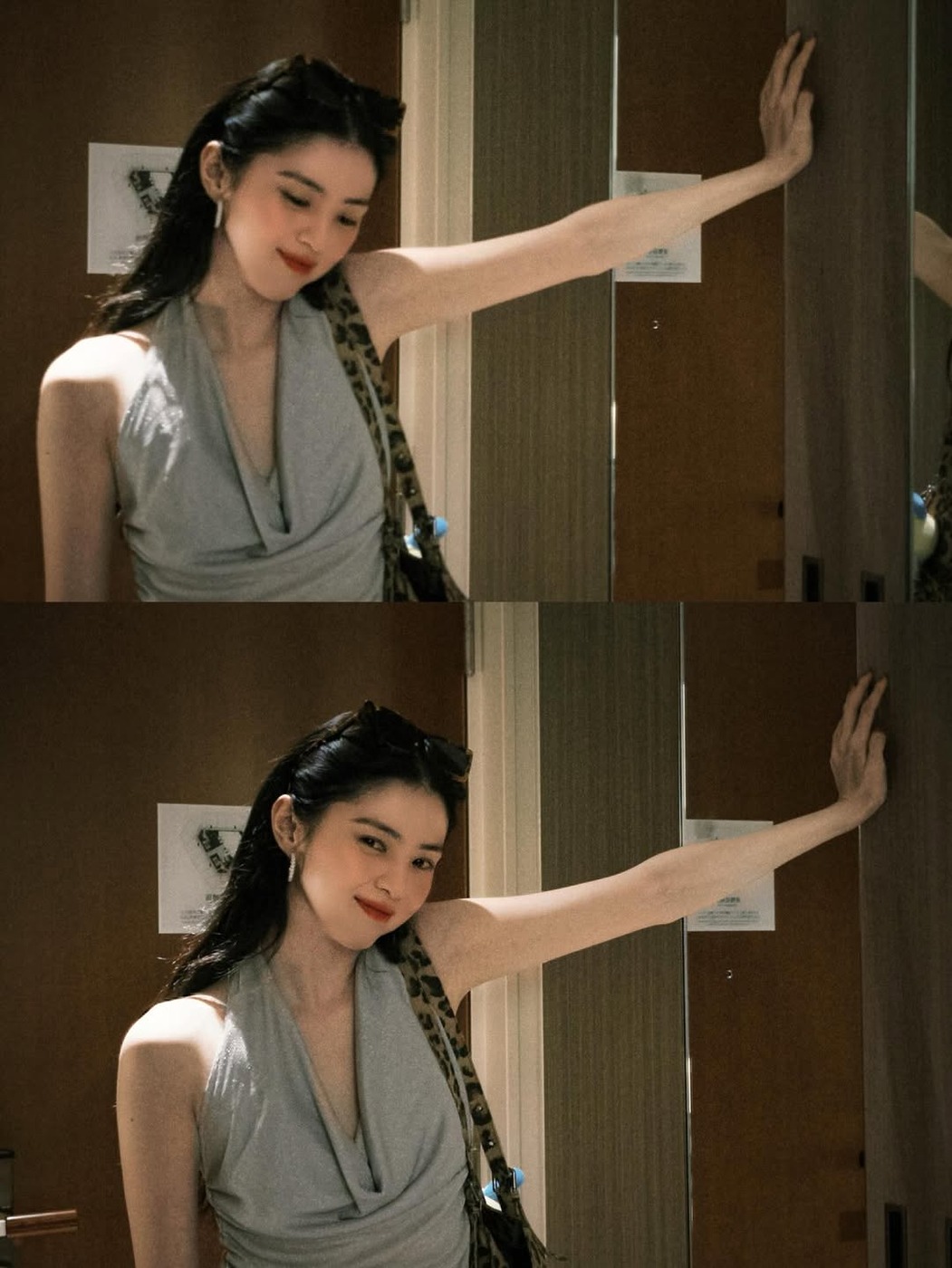 신시아는 빈티지한 워싱의 아이시 블루 데님을 함께 매치해 레오파드 패턴을 일상에서 연출하기 쉬운 스타일링으로 선보였는데요. 와이드 핏 데님이 주는 쿨한 무드가 레오파드 톱과도 잘 어우러지죠. 여기에 미니 사이즈의 생 로랑 니키 백, 주얼리 장식이 돋보이는 로저 비비에의 샌들로 마무리한 센스도 눈여겨보시길!