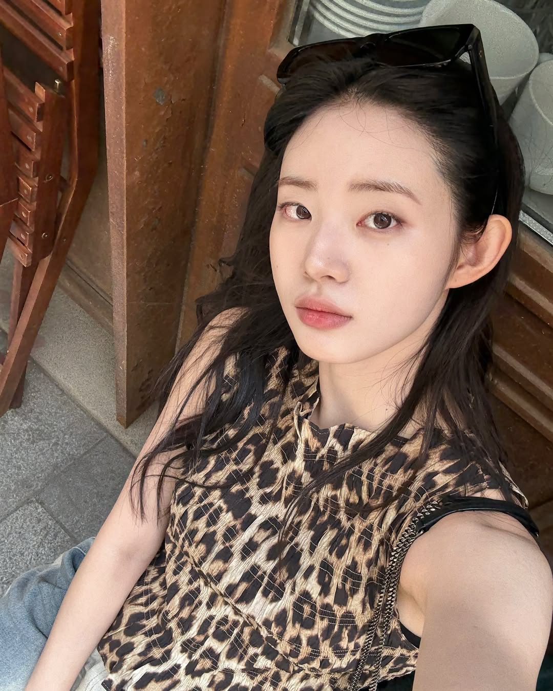 머리 위에 얹은 젠틀몬스터의 선글라스 ‘제니’, 해외에서도 인기를 끌고 있는 국내 가방 브랜드 세이모온도(SAMO ONDOH)의 ‘르 벨트 백’, 데님 쇼츠로 한소희 감성이 듬뿍 깃든 Y2K 룩을 연출했답니다. 월드 투어 팬미팅 투어 중인 한소희가 최근 즐겨 드는 이 가방의 패턴이 레오파드라 인상적인데요. 선글라스도 역시 레오파드로 맞춰 액세서리의 통일감을 높였습니다.