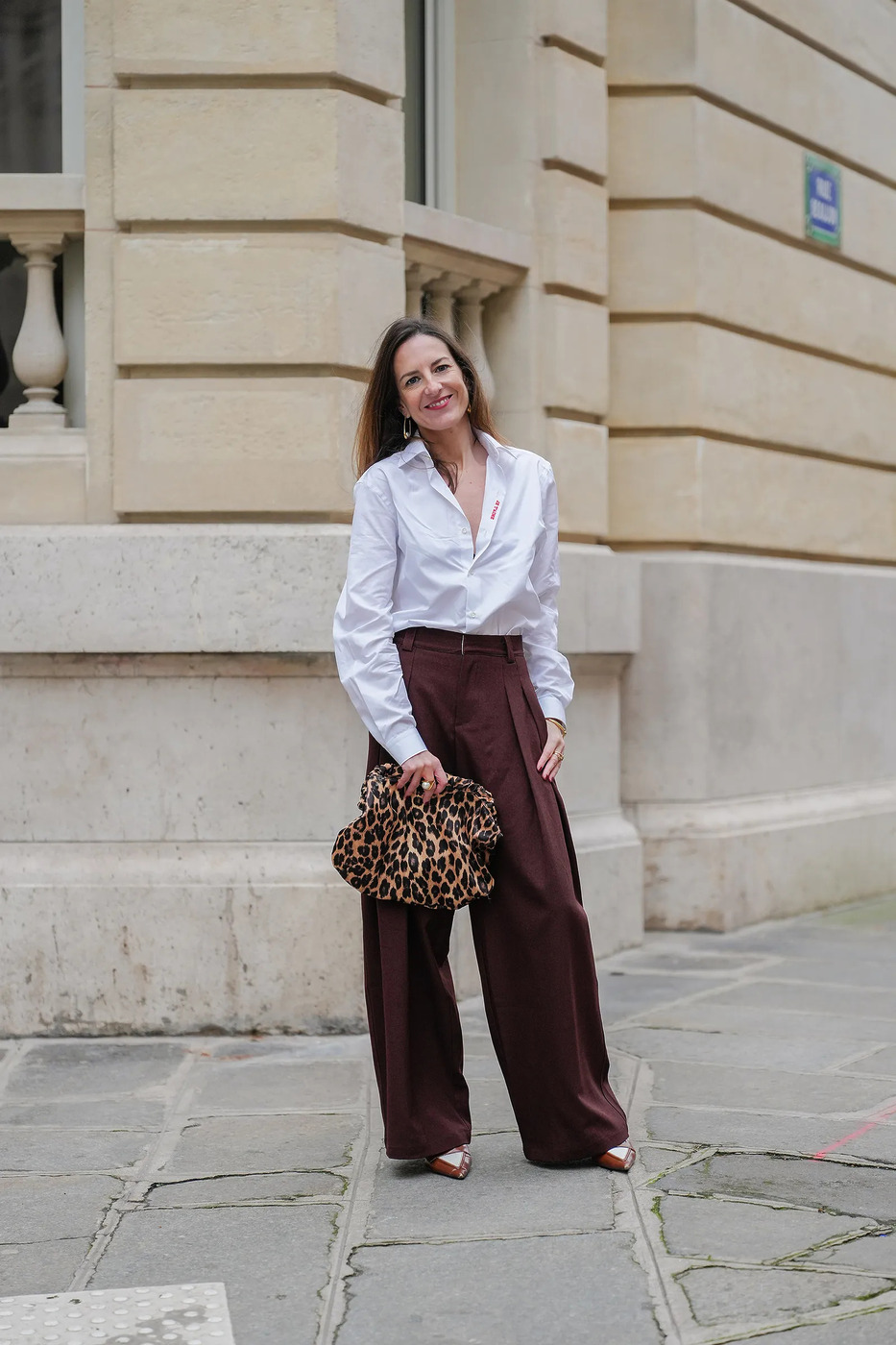 1990년대 컬러 팔레트는 블랙, 브라운, 그레이였어요. 이를 응용해 하이웨이스트 브라운 팬츠와 화이트 셔츠, 투톤 힐 로퍼를 매치하면 완벽한 오피스 룩이 완성됩니다. 긴 목걸이나 애니멀 프린트 백을 더하면 역동적인 재미를 줄 수 있죠.