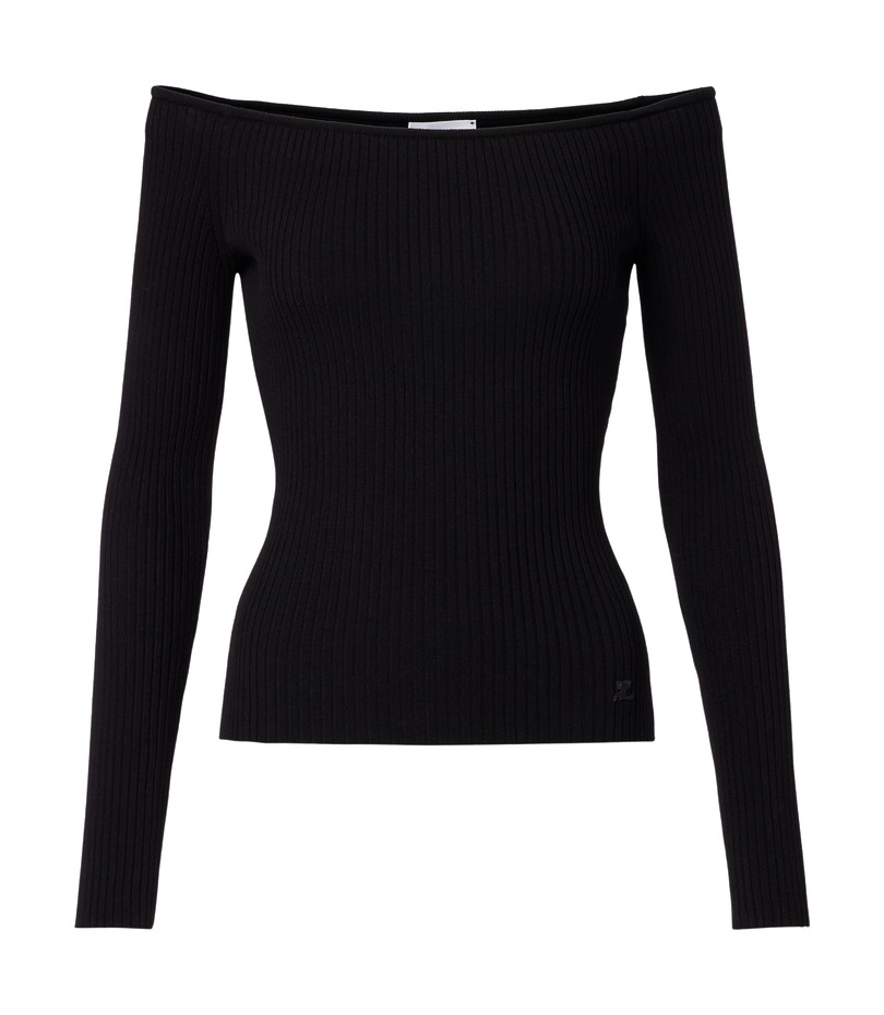레드 로퍼 + 플레어 진 + 오프숄더 블라우스