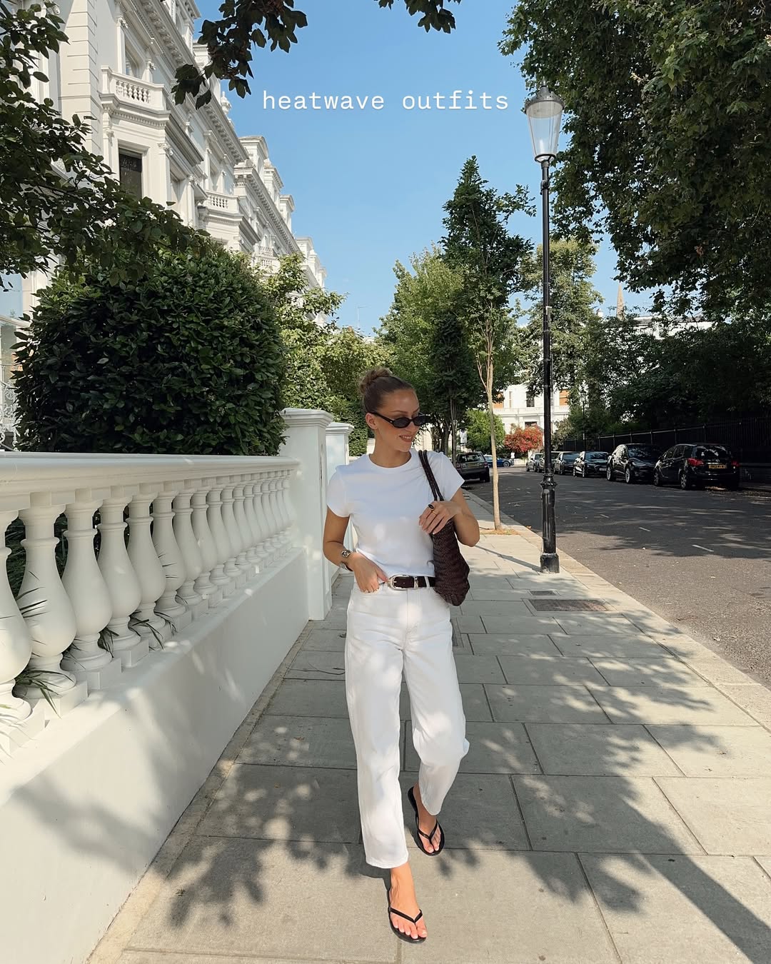 화이트 진은 뜨거운 햇살 아래서는 시원해 보이며, 아침저녁 쌀쌀해지는 기온을 감당하기에 제격이죠. 기본적으로 청바지이기에 다재다능하고, 산뜻한 컬러감 덕분에 스타일링하기도 쉽고요. 깨끗하고 우아해 보인다는 것도 장점입니다. 한 벌씩은 옷장에 들어 있을 테니까 언제든 꺼내 입을 수도 있죠!
