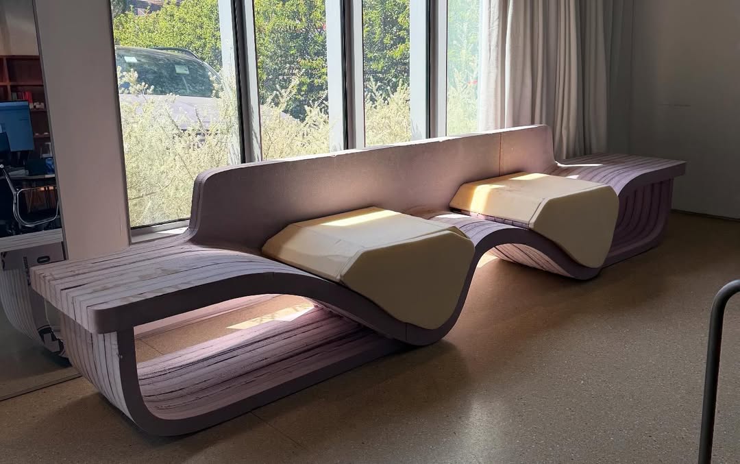 비버가 공개한 사진에는 벤치가 담겨 있었습니다. 물결무늬로 디자인된 나무 벤치로, 보라색과 옅은 노란색 등 SKYLRK가 자주 사용하는 색으로 이루어져 있죠. 비버는 “SKYLRK 컨셉 벤치를 실제로 만들어봤다”며 “첫 번째 프로토타입”이라고 설명했습니다. 사진 속 벤치는 디자인과 모양을 테스트하기 위해 만든 것으로 보입니다.
