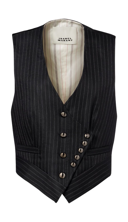조끼가 자유분방하기만 하진 않습니다. 재킷처럼 직선 라인이 돋보이는 조끼에 미니멀한 컬러를 더해보세요. 정갈한 분위기가 살아나며 탱크 톱 같은 가벼움이 사라집니다. 청바지에 입어도 단정한 룩이 완성되죠. 청바지의 실루엣은 플레어, 스트레이트 모두 상관없습니다. 다만 신발과 가방은 최대한 얌전한 걸로 골라보세요.