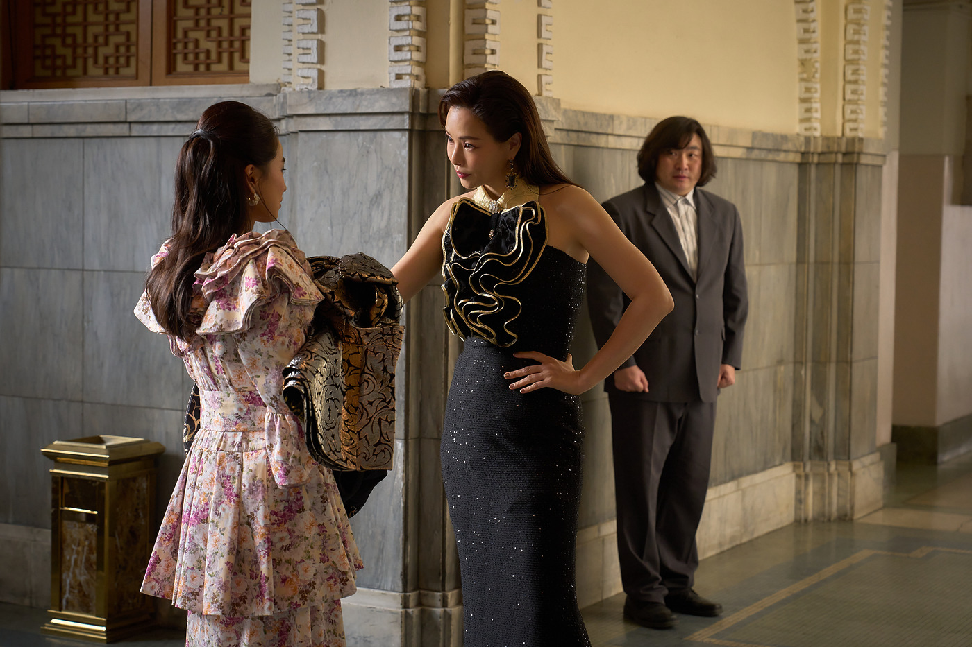 <애마>의 세계관에서 1970년대부터 스타였던 정희란은 “영화한테 당했다”는 감정을 고백한다. 이어지는 장면은 제작자와 감독의 저속한 편집으로 배우가 착취당하는 모습이다. “한 작품에 배우가 쏟는 몫이 있고, 열심히 임하다 보면 인생의 한 부분을 도려내서 바칠 수밖에 없게 되는데… 아, 나의 피와 땀이 이렇게 이용당했구나. 극장에서야 비로소 깨닫게 되는 거지.” <애마> 속 여배우들은 영화에서뿐 아니라 권력층의 연회에 불려 다니고 언론에도 희생된다. <애마부인>으로 섹스 심벌이 된 신인의 삶도 냉혹하다. 감독조차 ‘쓰레기’라 부른 영화에 출연한 그녀는, 친구들에게 “부끄러운 영화”라는 말을 듣는다. 실제 그 시절 여배우들은 세상의 시선 속에서 어떤 감정을 느꼈을까. 관객은 불편하게나마 그들의 심정까지 상상하게 된다.