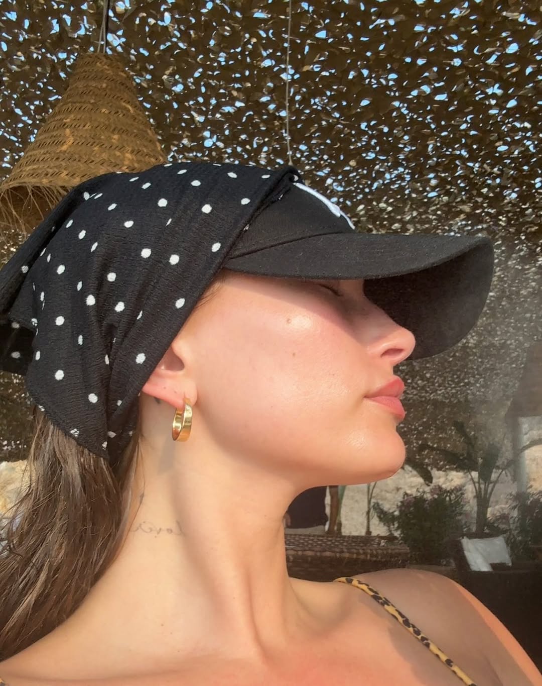 엘리엇의 말대로, 이런 장점 덕분에 반다나를 비롯한 헤어 스카프는 바쁜 현대 여성들의 시그니처 아이템으로 자리매김하는 중입니다. 최근에는 헤일리 비버와 알렉사 청이 휴가 기간 중 반다나를 착용했죠. 이탈리아 코모 호수에서 포착된 모델 올리비아 조안 역시 머리를 뒤로 묶은 채 흰 반다나를 쓴 모습이었습니다. “머리카락이 얼굴에 닿지 않고, 두피가 타지 않도록 보호해주죠. 동시에 스타일리시해 보이기까지 해서 반다나를 사랑해요.” 조안의 말입니다. “예쁜데, 실용적이기까지 한 액세서리만큼 더 좋은 게 있을까요?”