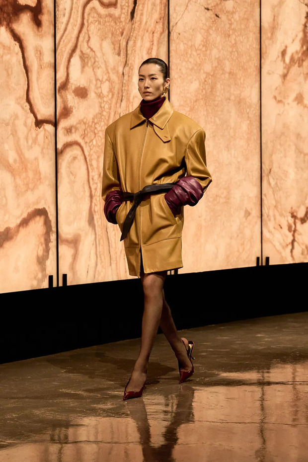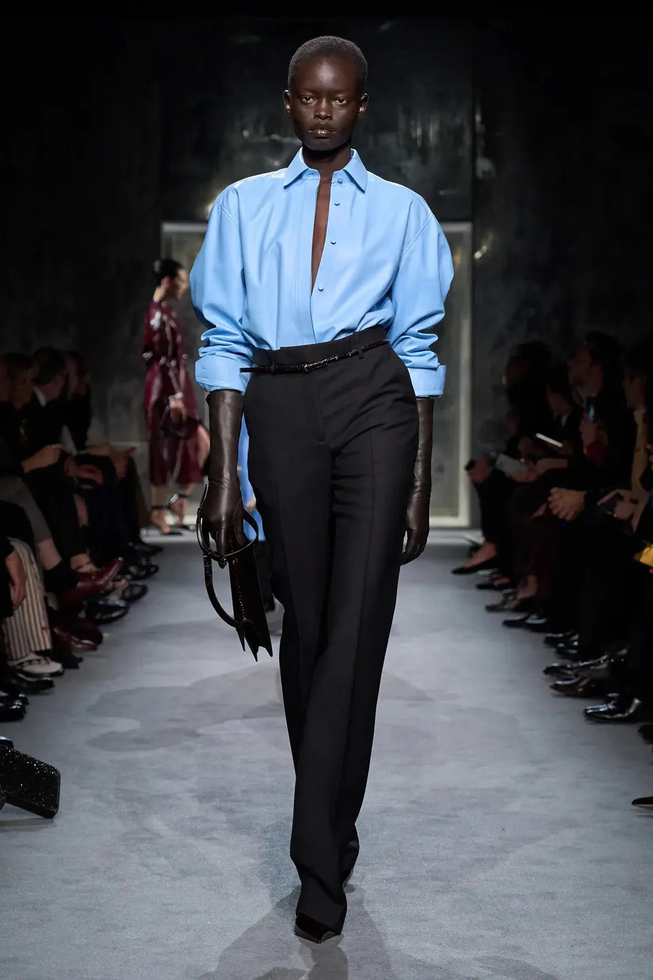 우선 전체적인 테마를 전합니다. 런웨이에서 가장 많이 보인 건 1980년대 비즈니스 우먼을 재현한 실루엣이었습니다. 생 로랑의 수장 안토니 바카렐로는 쇼 직전, 백스테이지에서 당당하고 여유롭게 말했죠. “꾸밈없이 오직 실루엣으로만 밀고 나가고 싶었어요. 대담한 컬러로 실루엣을 강조했을 뿐, 구조는 전무하고 옷의 볼륨은 오직 ‘형태와 소재’에서 비롯됐죠. 모든 게 가볍고, 움직임에 자유가 깃들도록요.” 테마에 걸맞게 모델들도 주머니에 손을 넣은 당당한 걸음을 보여줬습니다. 과거의 비즈니스 우먼이 남성성을 모방하기 위해 수트를 입었다면, 지금은 자기만의 힘을 표현하기 위해 선택한 거죠.