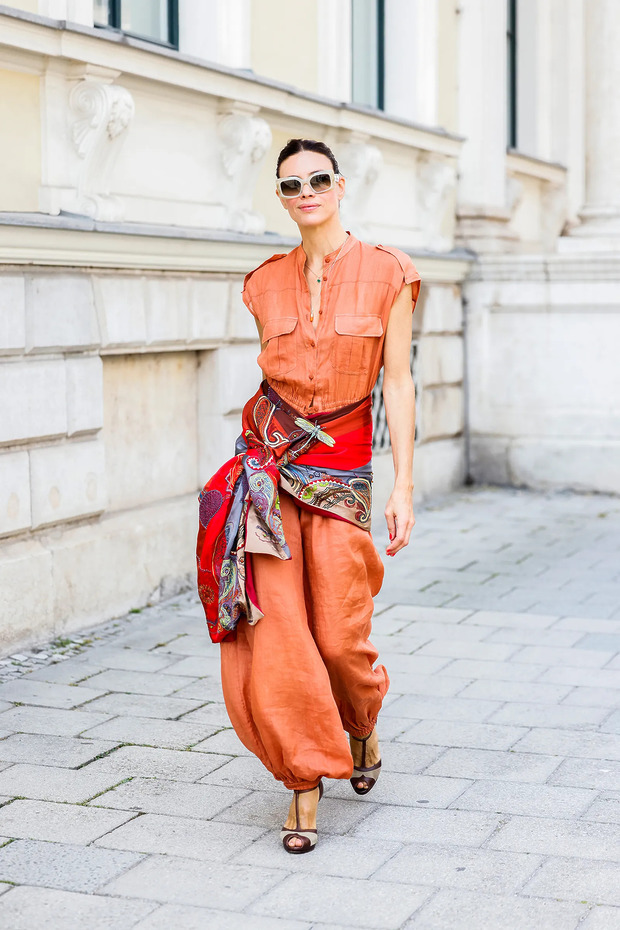 지난달 <보그>에서 한 차례 조명한 바 있는 하렘 팬츠를 빼놓을 수 없습니다. 흡사 공기를 주입한 듯, 과장된 실루엣의 하렘 팬츠는 모든 게 낭만적이었던 1980년대 특유의 정신을 표현하기에 가장 적합한 아이템이었죠. 그 강렬한 존재감 때문에 매치하기 어려운 바지라는 생각이 들 수 있지만, 실상은 그렇지 않습니다. 보헤미안 스타일의 톱을 입은 뒤, 허리에 실크 스카프를 두르기만 하면 끝이죠.
