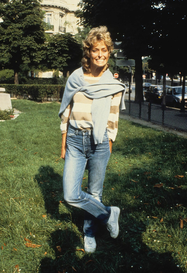 물론 1980년대라고 모두가 화려한 바지를 입고 거리로 나섰던 것은 아닙니다. 보다 얌전한 스타일링을 즐기던 사람들은 스트레이트 데님을 입었죠. 그렇다면 세상 모든 사람에게 익숙한 스트레이트 데님을 ‘2025년식’으로 소화하는 방법은? 예상치 못한 터치를 가미하는 겁니다. 파라 포셋(Farrah Fawcett)처럼 어깨 위에 니트를 두르거나, 코펜하겐 패션 위크 중 포착된 게스트처럼 스크런치와 신발 앞코의 색깔을 통일하는 거죠!