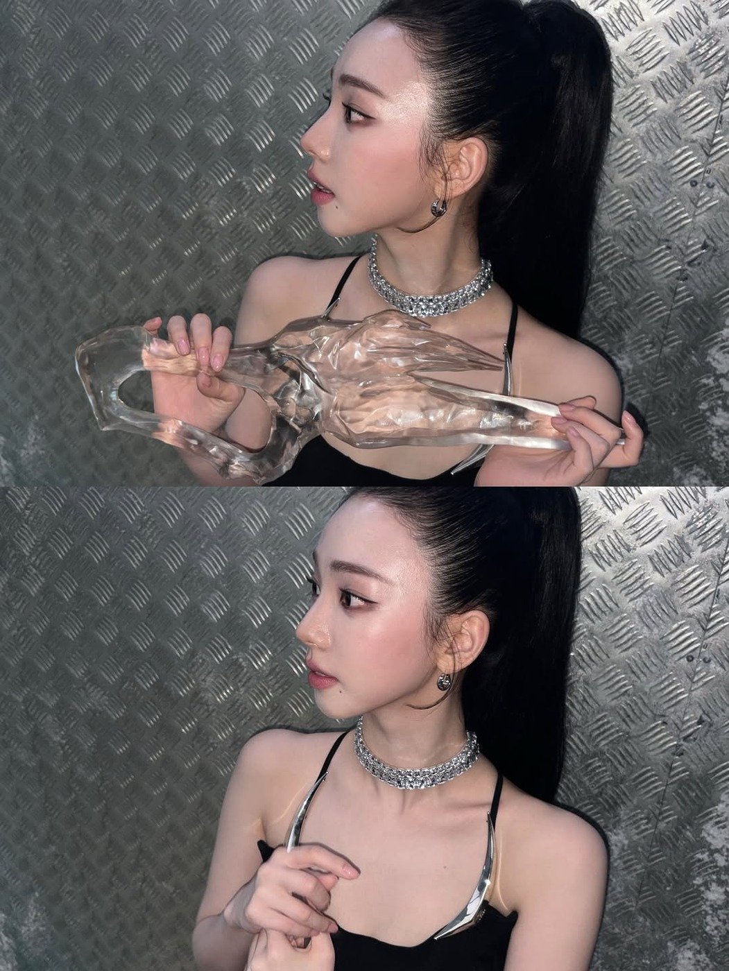 카리나는 슬릭 백 포니테일을 자주 하고 있습니다. 지난해부터 해외 셀럽과 인플루언서가 먼저 즐기기 시작해 요즘은 주변에서도 많이 보이죠. 얼굴 윤곽을 또렷이 드러내는 스타일이라 이목구비를 강조할 수 있습니다. 진입 장벽이 높아 보이지만 의외로 간단하니 집에서 연습 삼아 시도해보세요. 묶기 전 머리에 물을 뿌리면 원하는 모양을 내기 쉬우며, 두피 쪽 머리를 하나로 모을 땐 돈모 브러시를 사용하면 결을 매끈하게 정리할 수 있습니다.